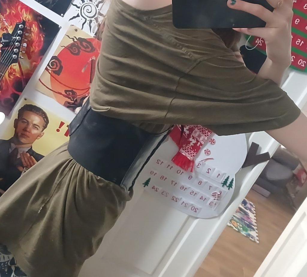 Przyszedł trochę podarty, ale to łatwo naprawić. Idealnie pasuje na talię o obwodzie 70 cm