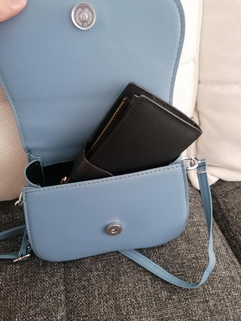 Wspaniała torebka, dla miłośniczek małych rozmiarów. Bardzo ładny kolor, dobrze uszyty. Portfele już się w nim nie mieszczą.