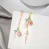Wiśniowe kwiaty kwiatowe długie asymetryczne kolczyki ze stopu metali dla kobiet