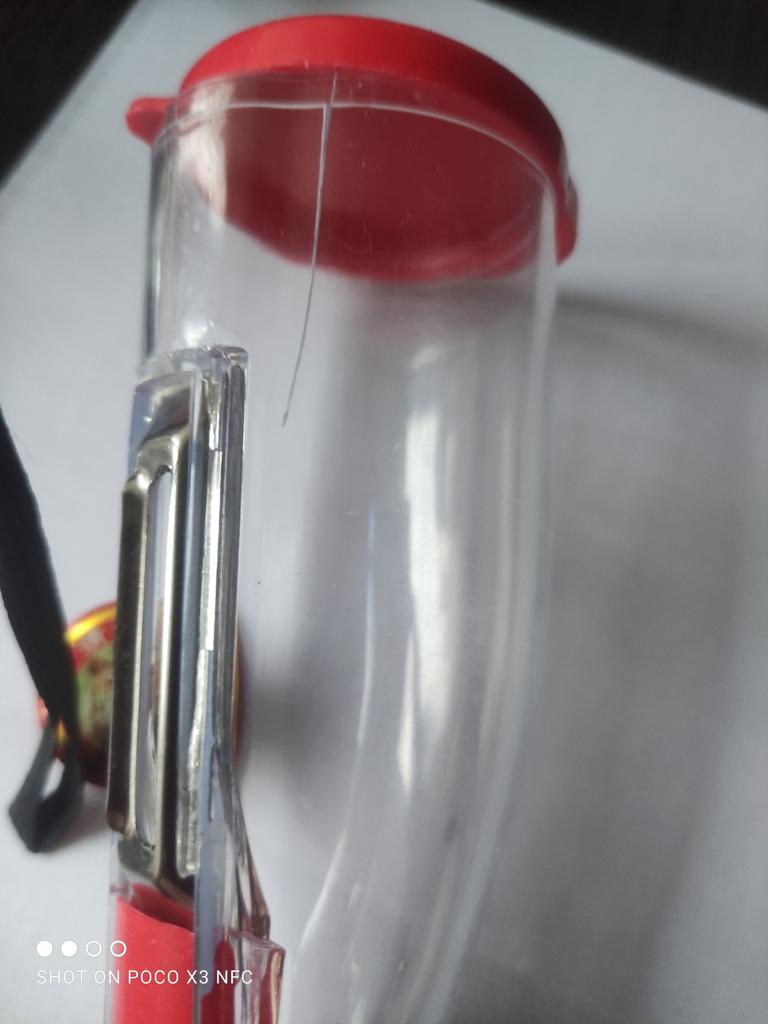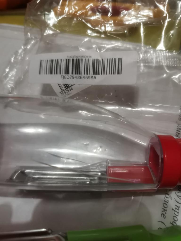 Ręczna obieraczka do warzyw była zapakowana w celofanowy woreczek i dotarła w miękkim opakowaniu z innymi towarami. Najwyraźniej podczas transportu, przy niskiej jakości opakowaniu, obieraczka została uszkodzona. Trzy pęknięcia w plastikowej obudowie uniemożliwiają jej używanie zgodnie z przeznaczeniem. Pieniądze wyrzucone w błoto. Bardzo szkoda!