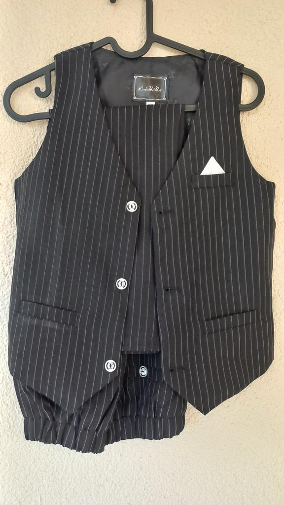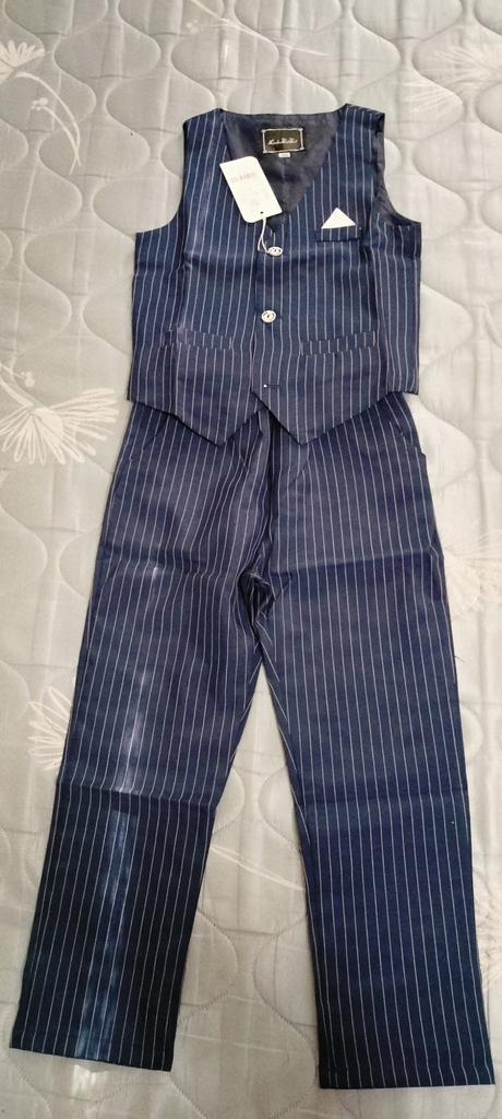 Na post 128 spodnie są za duże i szerokie, ale kamizelka jest w sam raz. Stylowy garnitur