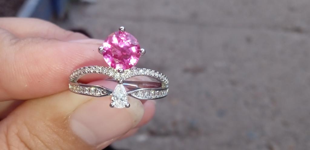 Pierścionek piękny, kamień w jaskrawym różu, dziękuję