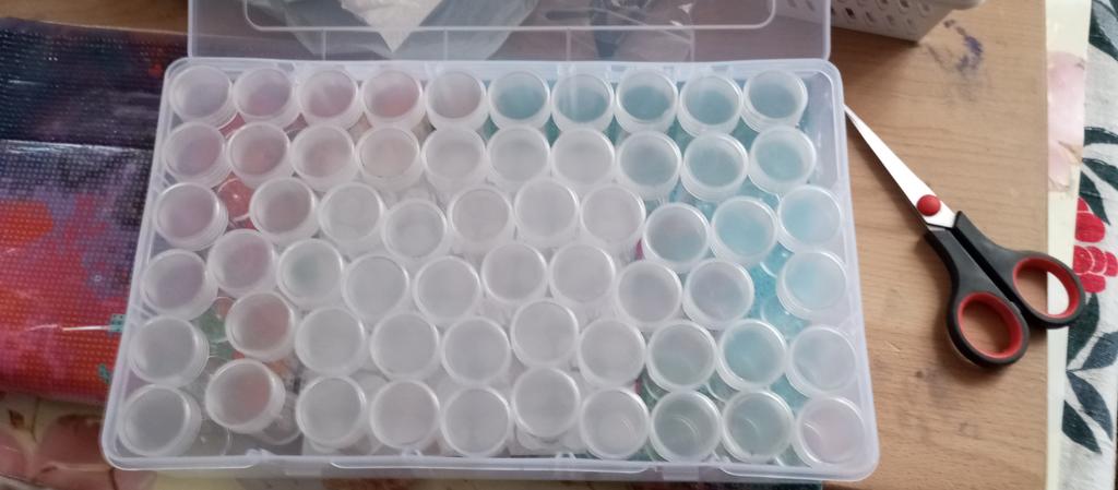 Zgodny z opisem, dobrze zapakowany, niestety pokrywa jest nadal uszkodzona, więc nie można włożyć do niej małych części. W przeciwnym razie jest to świetny pojemnik z 60 małymi butelkami do przechowywania małych części.