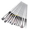 12 sztuk pędzli w różnych kształtach i rozmiarach, które mogą zaspokoić różne potrzeby malarskie, w tym okrągłe końcówki (0 #, 1 #, 2 #, 3 #, 4 #, 5 #, 6 #, 7 #); Płaskie końcówki (1/2#,1"#;); Końcówka Figger (2/0#); Końcówka w kształcie kociego języka (3/4#).