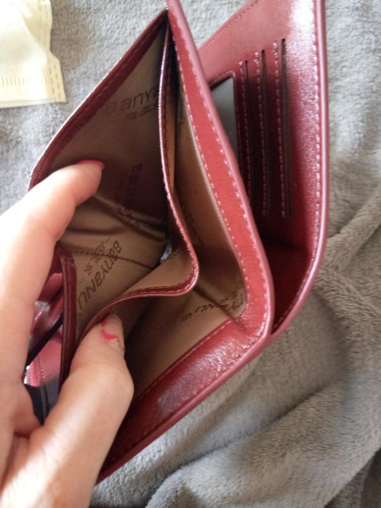 Portfel też bardzo fajny, ale jak wejdzie za dużo kart to nie da się go dobrze zamknąć, przegroda na drobne też nie jest duża, ciężko się do niej dostać, bo jest naprawdę wąska.