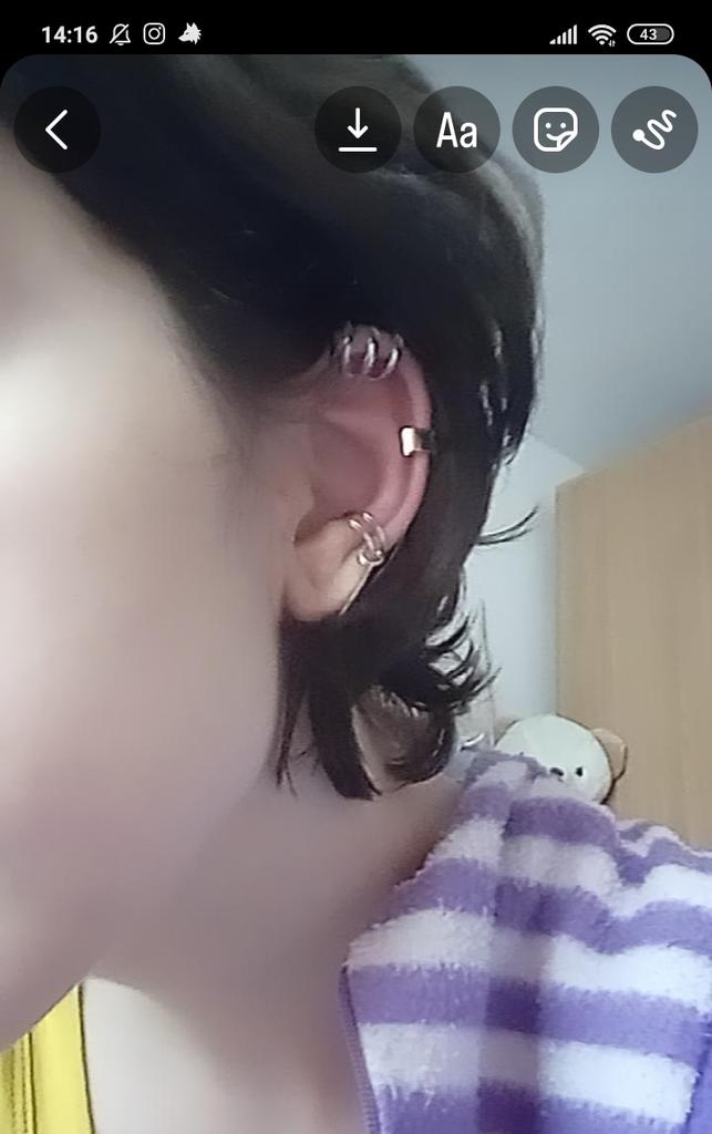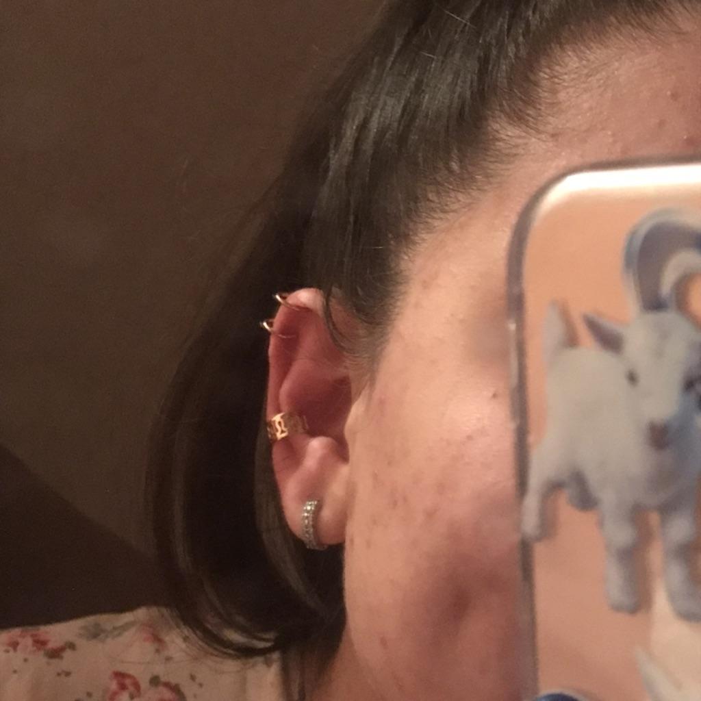 Zamówienie przyszło dość szybko ✔️ W jednym kawałek od razu pękł i nie trzymają się zbyt dobrze na uchu❌ Ale można go nosić, wygląda pięknie👍