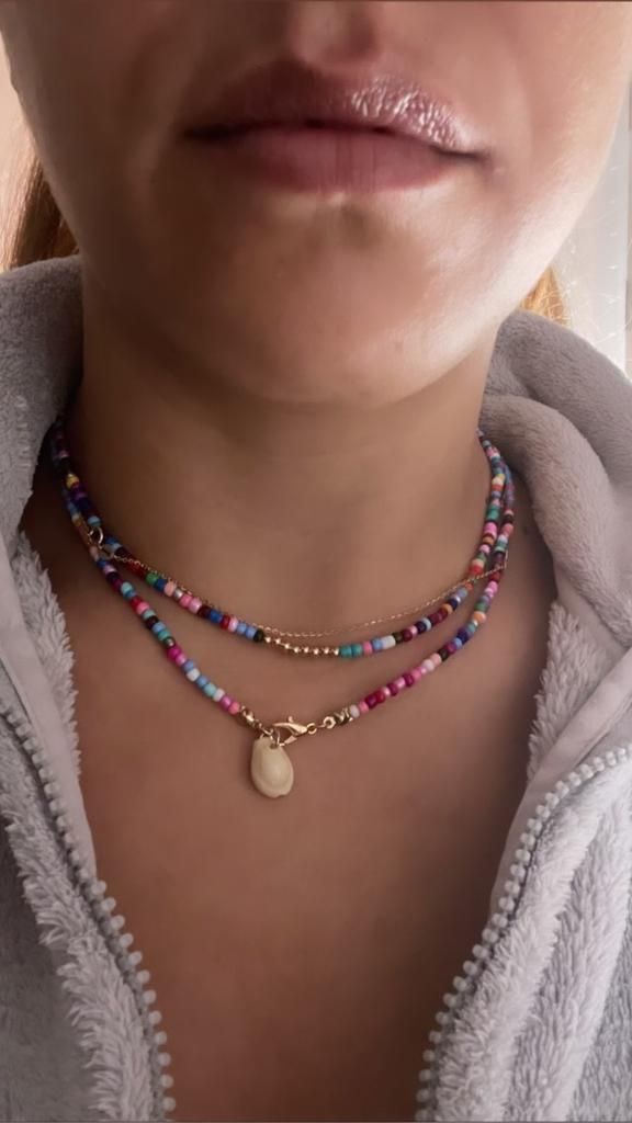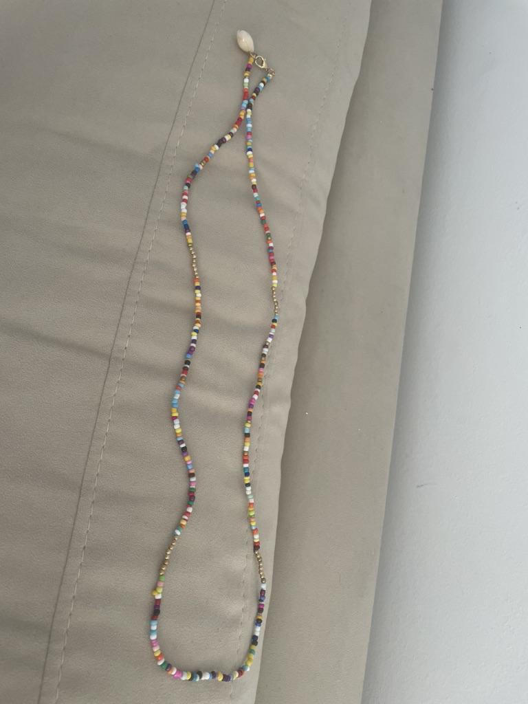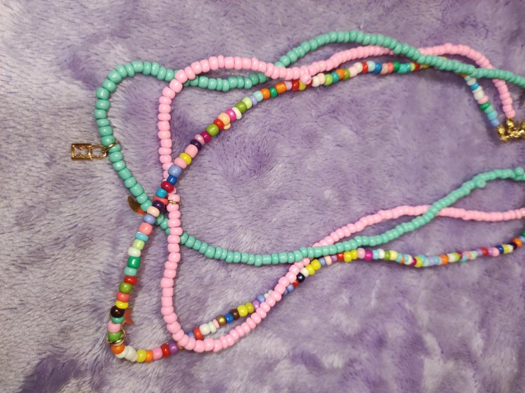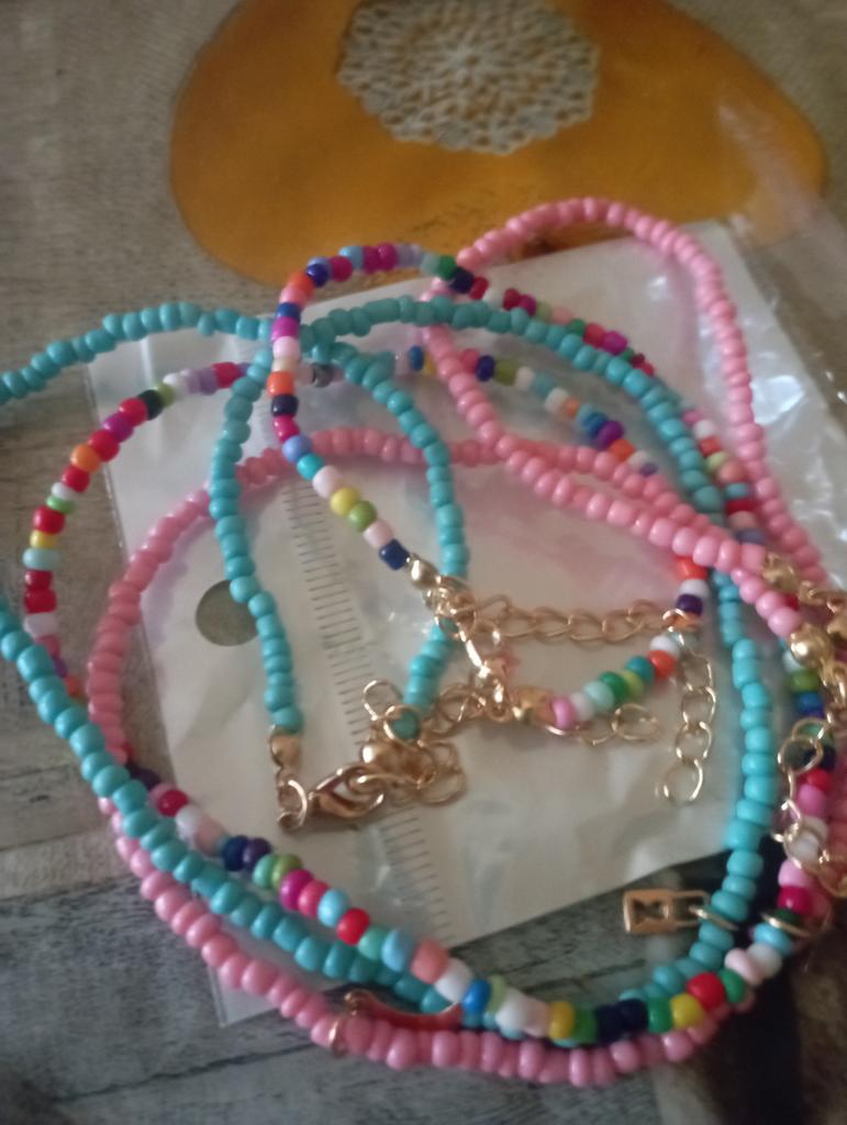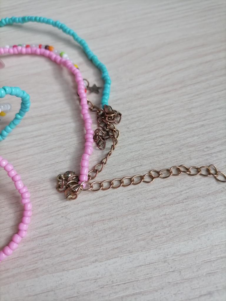 Fajne koraliki. Jasne, wesołe. Wszystkie mają tę samą długość, ale można je regulować za pomocą łańcuszka.