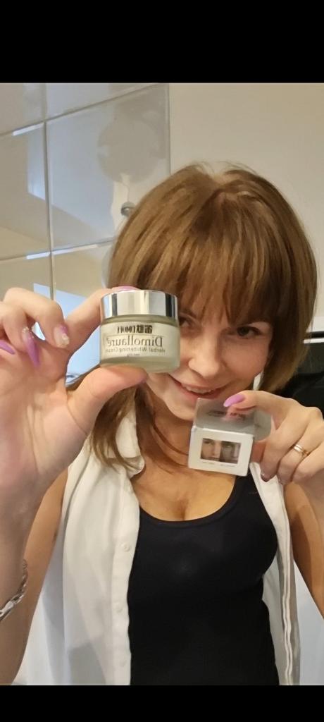 🛍️Krem wybielający do twarzy🛍️ Ocena: ⭐⭐⭐⭐⭐ 👈 Ten krem może pomóc wybielić plamy pigmentacyjne, piegi i rozjaśnić twarz. • Może zapewnić nawilżenie, odżywienie, wybielenie, odnowę skóry, trądzik i nie tylko... • Jest chroniony w pięknym opakowaniu. • Zawartość produktu: 20 gramów 👈 Wielkie dzięki dla Dimollaure'a za wysłanie mi paczki! Serdecznie polecam do zakupu🛍️