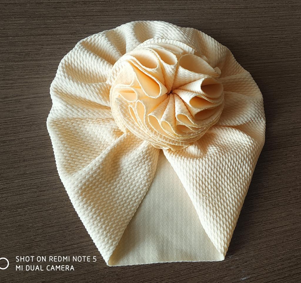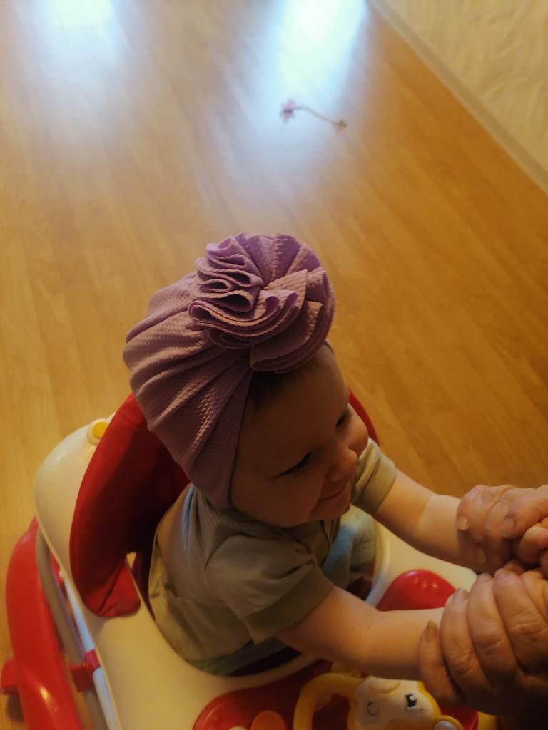 Śliczny turban, ale kolor bardzo różni się od koloru, który zamówiłem. Zamówiłam jasny brąz, jednak kolor jest bardziej wpadający w jasną morelę. Materiał nie jest tak elastyczny jak oczekiwano, więc czapka nie będzie pasować na długo. Moja córka ma 9 miesięcy i czapka jest już bardzo ciasna.