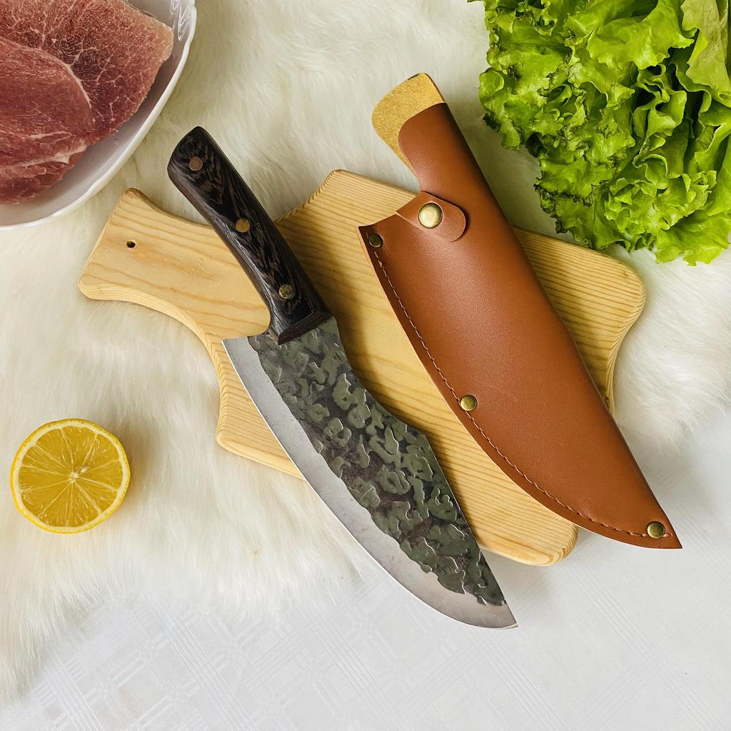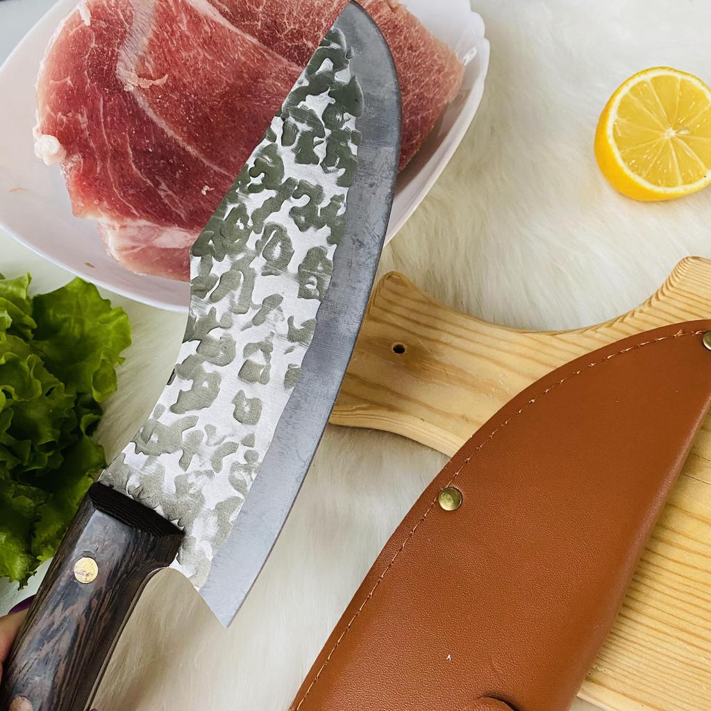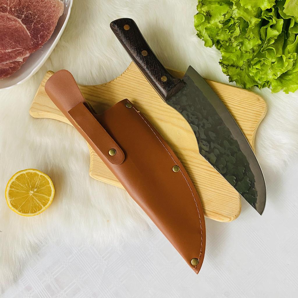 Ręcznie kuty nóż japoński Stalowe noże kuchenne do odkostniania szef kuchni krojenie tasak Santoku z pochwą