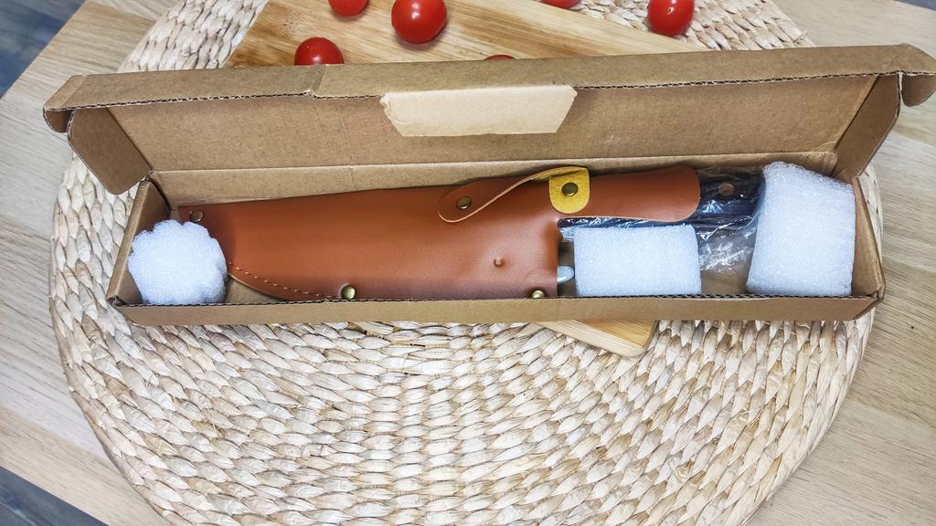 Przybył bardzo dobrze zapakowany. Ochraniacze ostrza na czubku i pięcie. Jeszcze nie używany, ale test kciuka jest ostry. Ma zrównoważone wyczucie z gładkim uchwytem na całej długości trzpienia. Zaktualizuje się po użyciu i wypraniu.