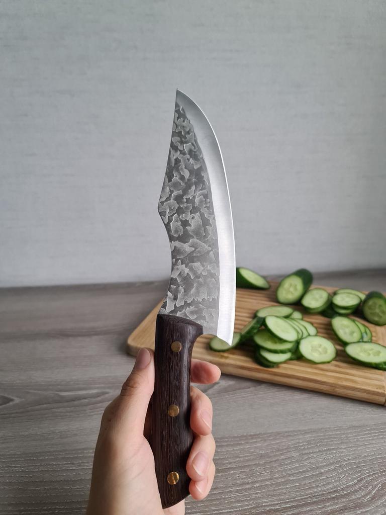 Wspaniały nóż! Stylowy, ostry, niezastąpiony w gospodarstwie domowym. Kto lubi dobre rzeczy, polecam.Myślałem, że jest bardziej miękki, ale jest pełnoprawnym nożem do krojenia. Gotuję z przyjemnością.