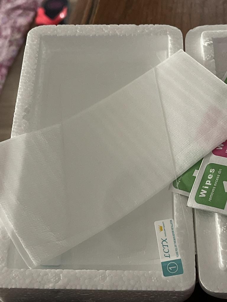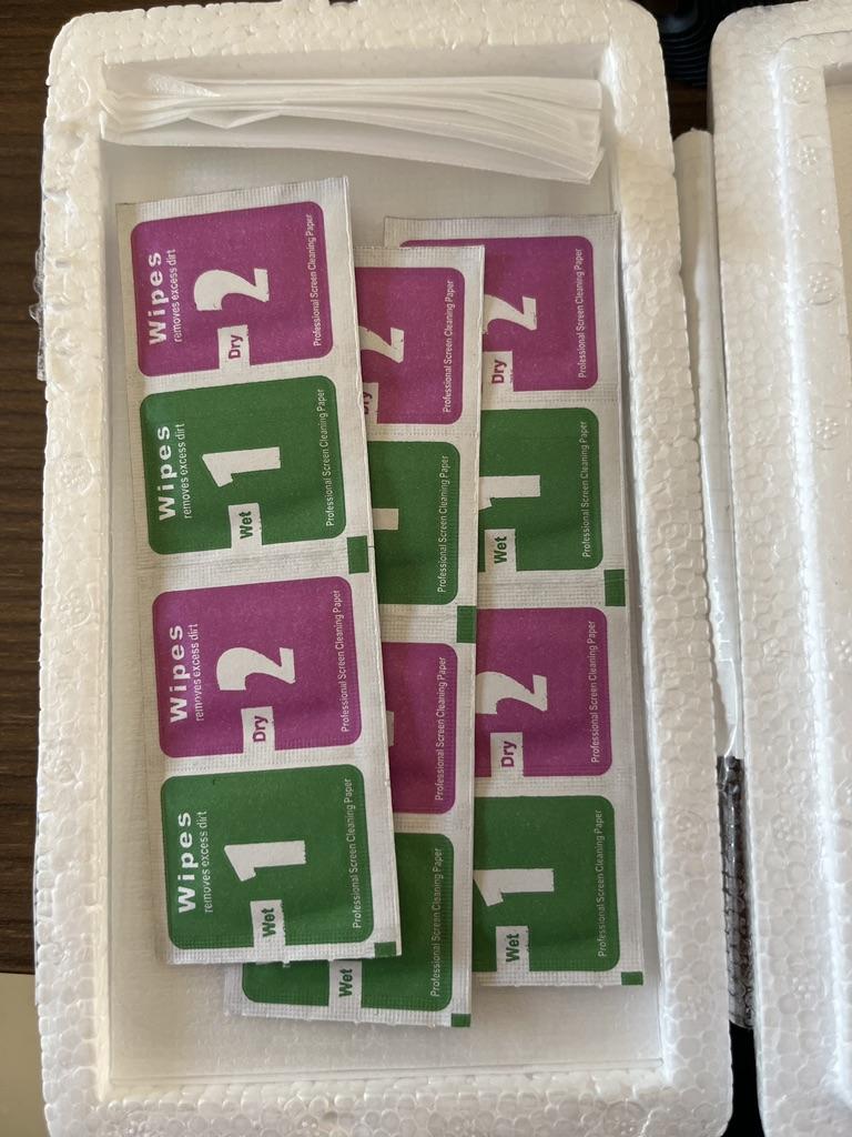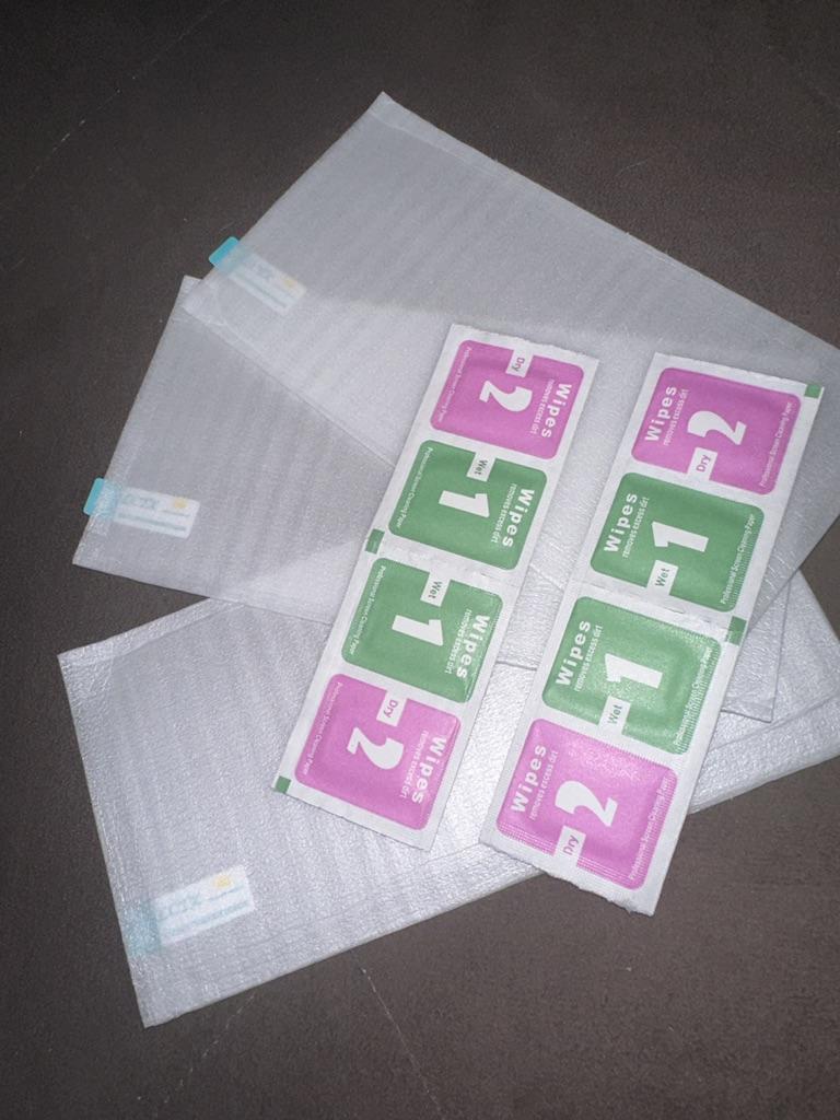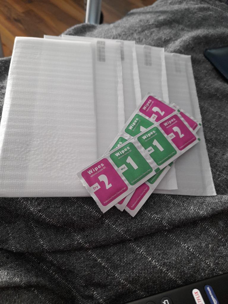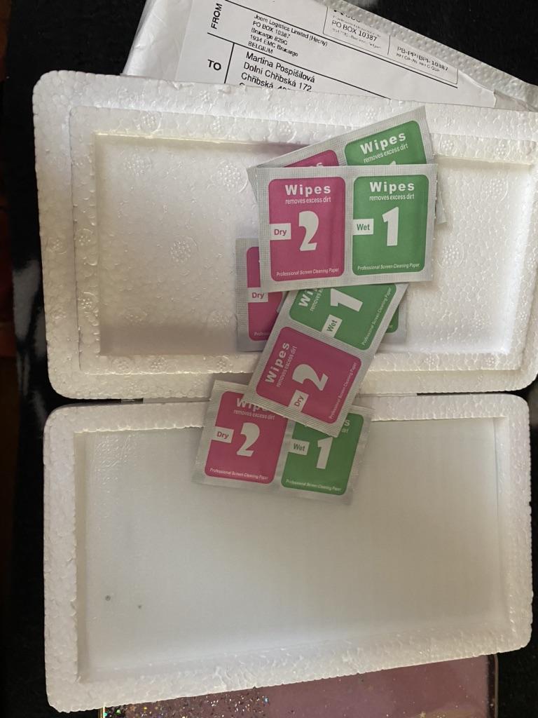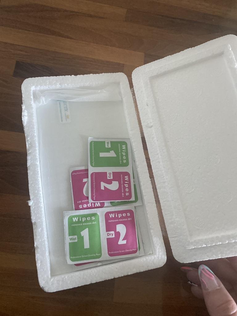 Przedmiot dotarł dobrze zapakowany. Płyta pasuje dobrze. Do każdego szkła hartowanego dołączona jest ściereczka nawilżona i sucha.