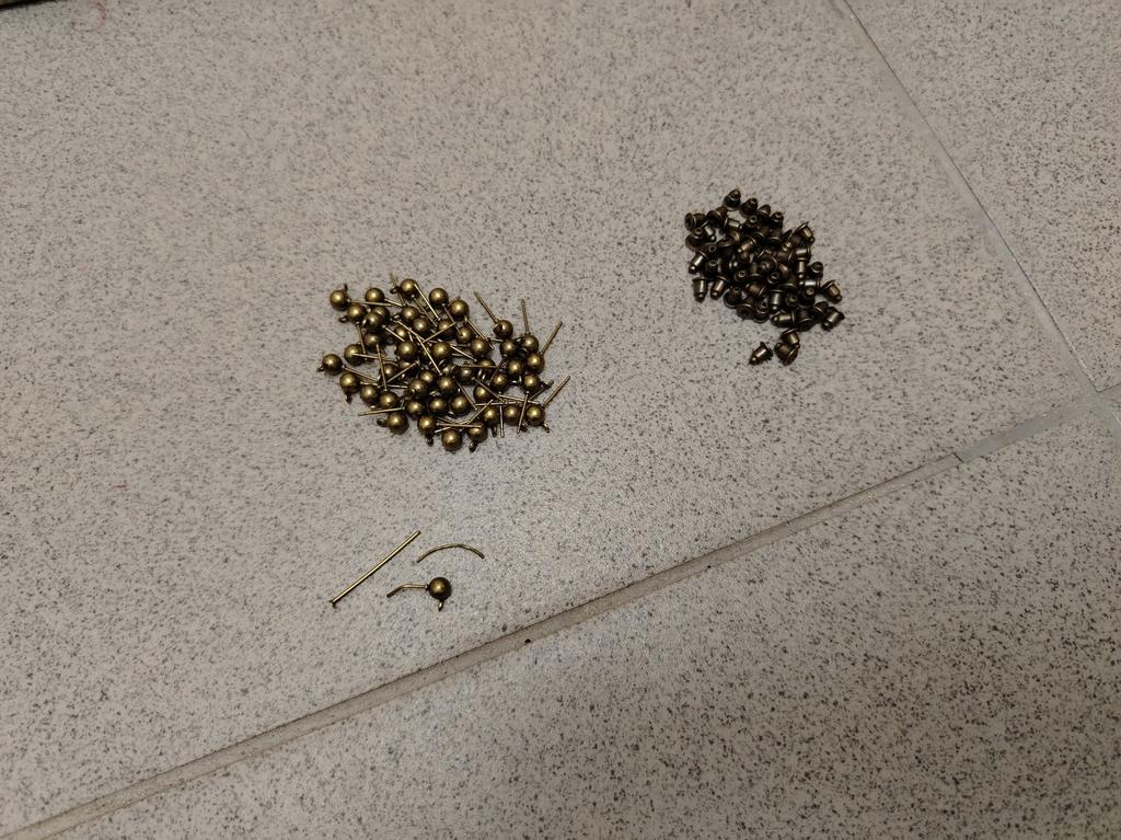 Bardzo małe kulki. Sam gwóźdź ma normalną długość i wygląda na metalowy. Z metalowymi wtyczkami