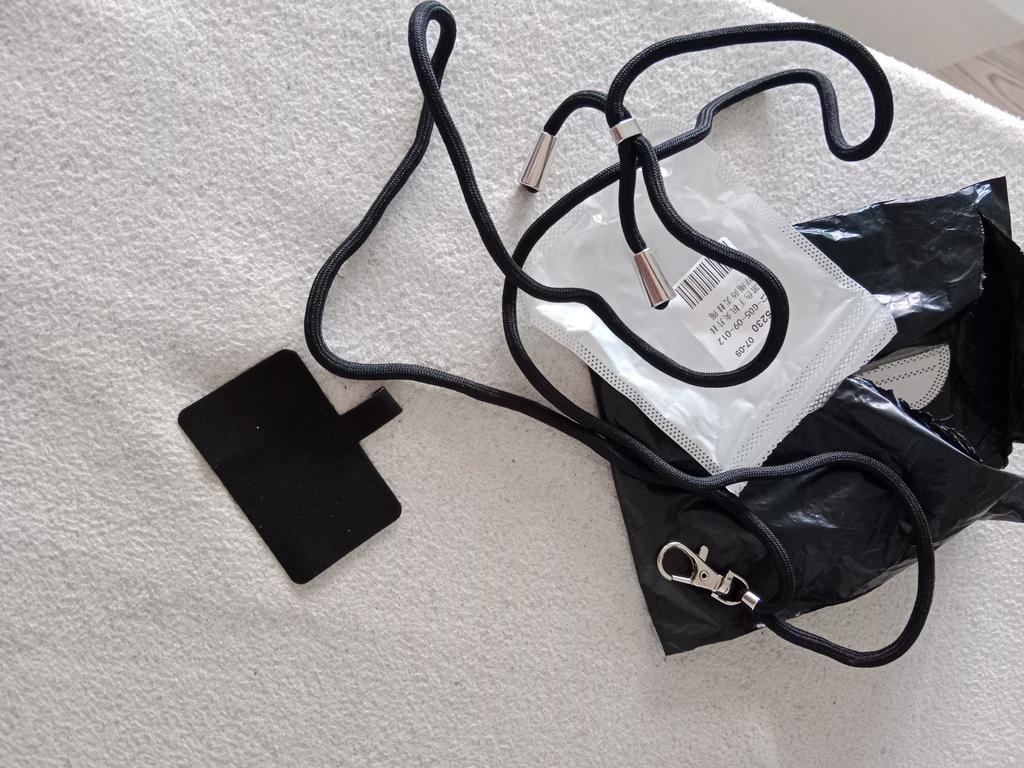 Płytka wsuwana z tyłu jest bardzo cienka, a sznurek zbyt cienki, należy to zaznaczyć przy wybranej długości! Haczyk jest delikatny, telefon nie może być zbyt ciężki!