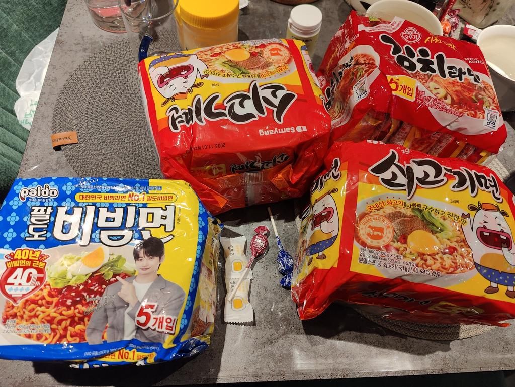 zupa: Baza wołowa, sól rafinowana, przyprawiona mąka smakowa, cukier rafinowany, przyprawa w proszku, fermentowana baza sosu sojowego, zielone warzywa, przyprawa w proszku na ostro, mąka o smaku wołowiny, przyprawiony sos sojowy w proszku, ekstrakt z drożdży w proszku, marchew, gruby ryż, warzywa Śmietanka w proszku, mieszana przyprawa w proszku, suszona zielona cebula, czarny pieprz w proszku, mieszanka aminokwasów (Wzmacniacz odżywiania, Wzmacniacz smaku), Czosnek w proszku, olej palmowy, wzmacniacz smaku, pikantna przyprawa o smaku czerwonej papryki, olej przyprawowy o smaku wołowiny, proszek o smaku wołowiny, ekstrakt z papryki, sproszkowany karmel (Kolor karmelowy, maltoza) Dekstryna).