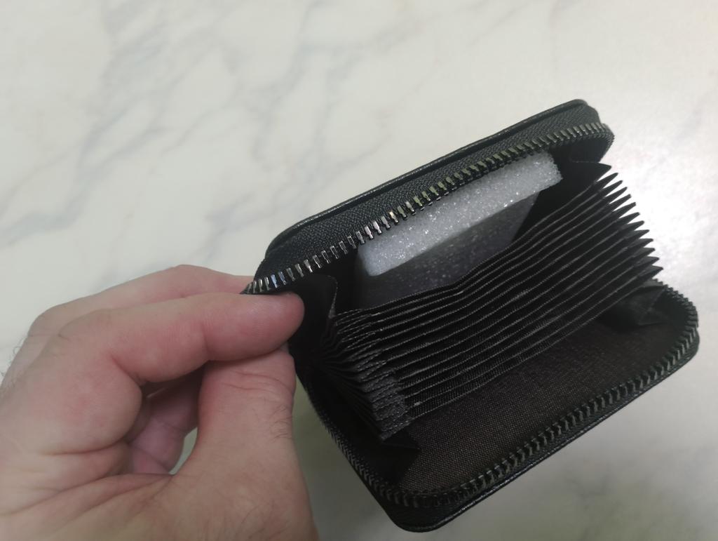 Zgodnie z opisem - dobry rozmiar, który dobrze leży w dłoni - 12 kieszeni na wszystkie moje karty.