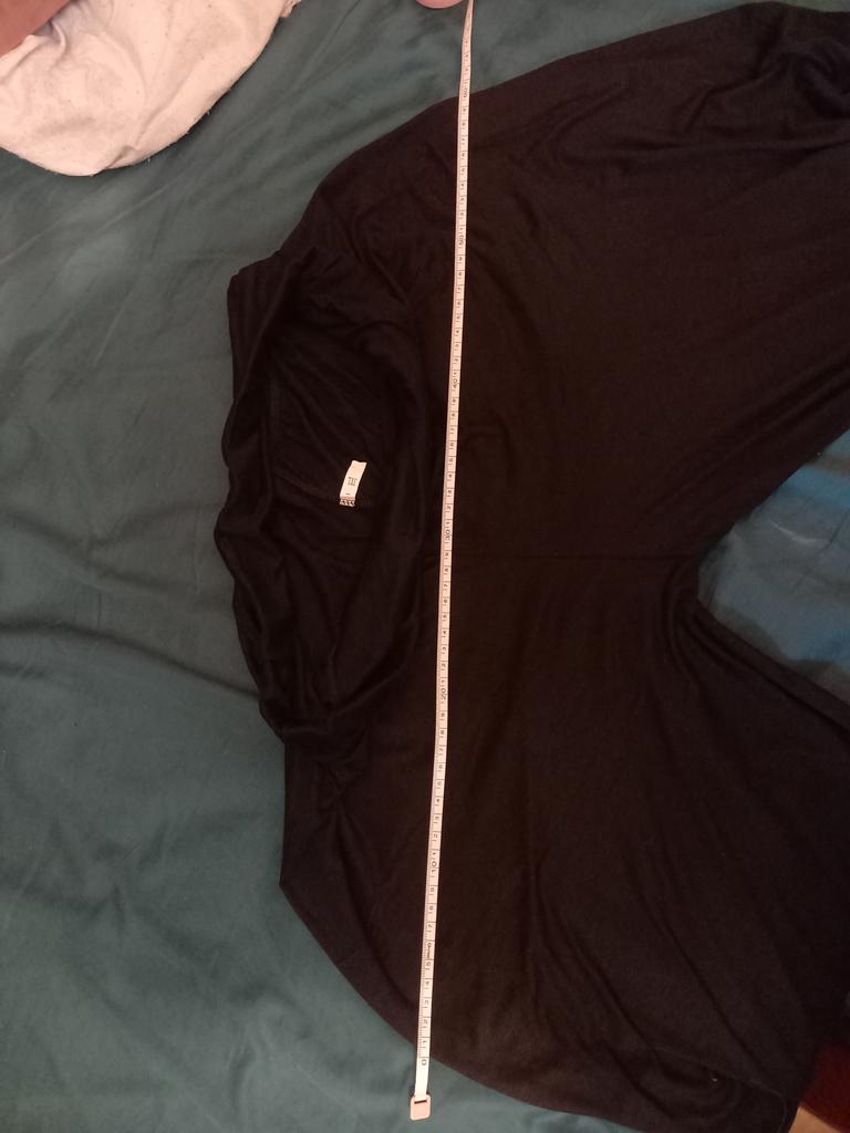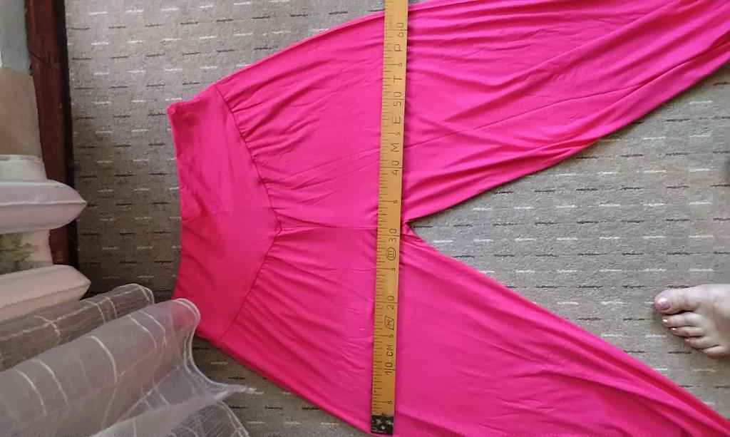 Przyjemny materiał, mam 155 cm wzrostu, ale długość dla mojego rozmiaru, 89 cm, jest i tak za krótka. Długość około 105 cm byłaby bliższa zdjęciu. Jako spodnie trzy czwarte sprawdzają się świetnie.