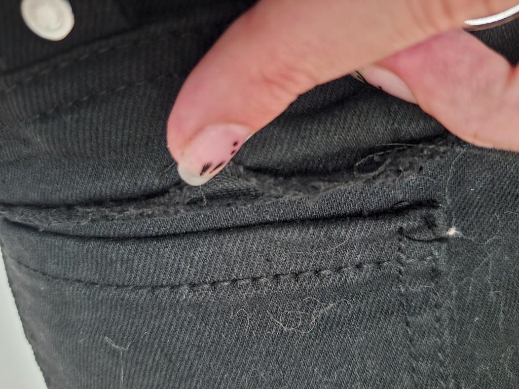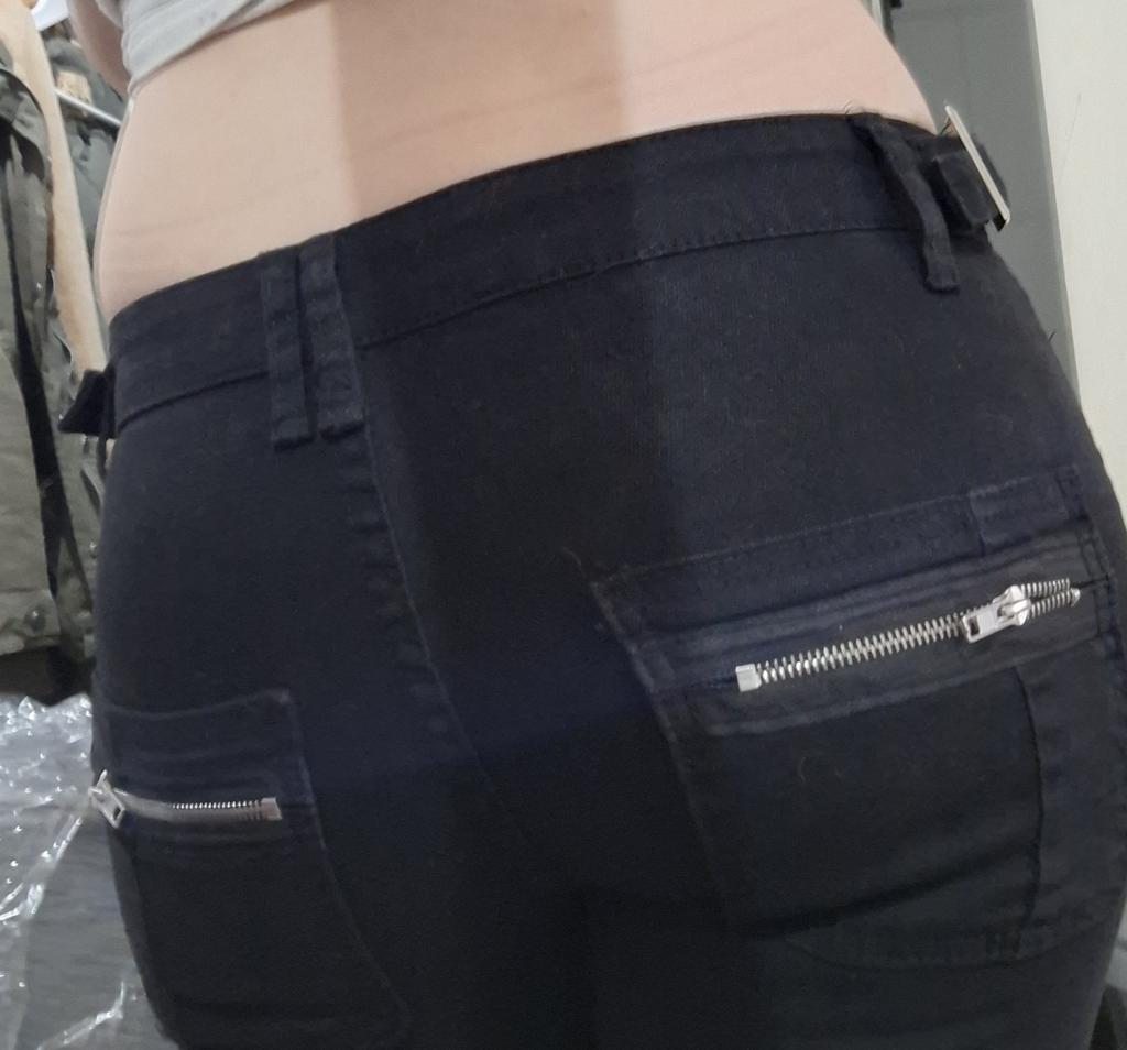 Spodnie nie odpowiadają rozmiarowi, nie zakrywają nawet całych pośladków. Kieszenie wyglądają na znoszone, jakby straciły kolor podczas prania.