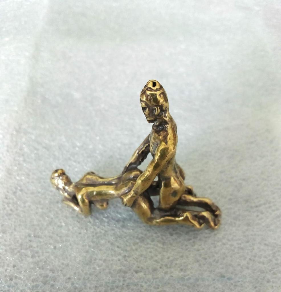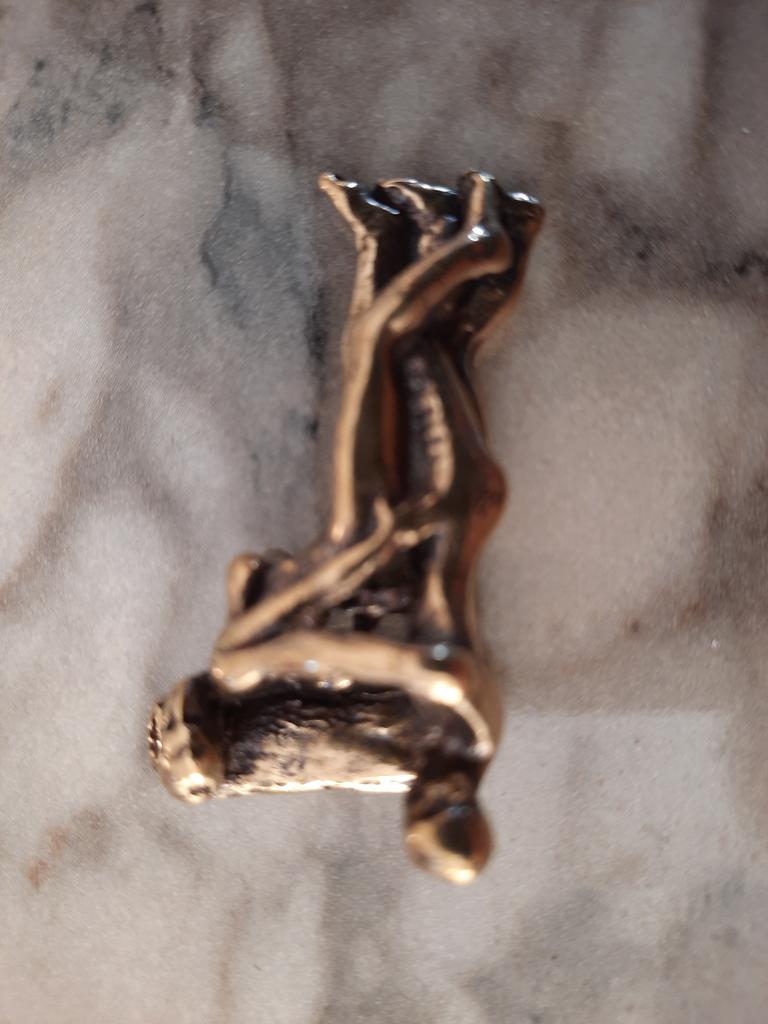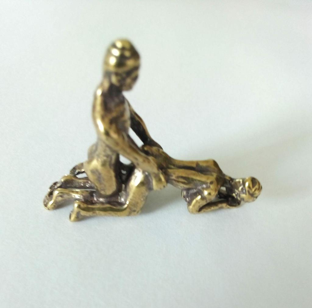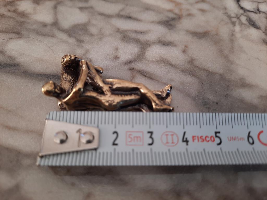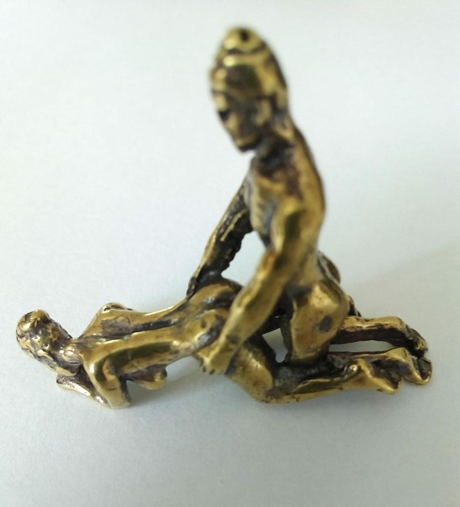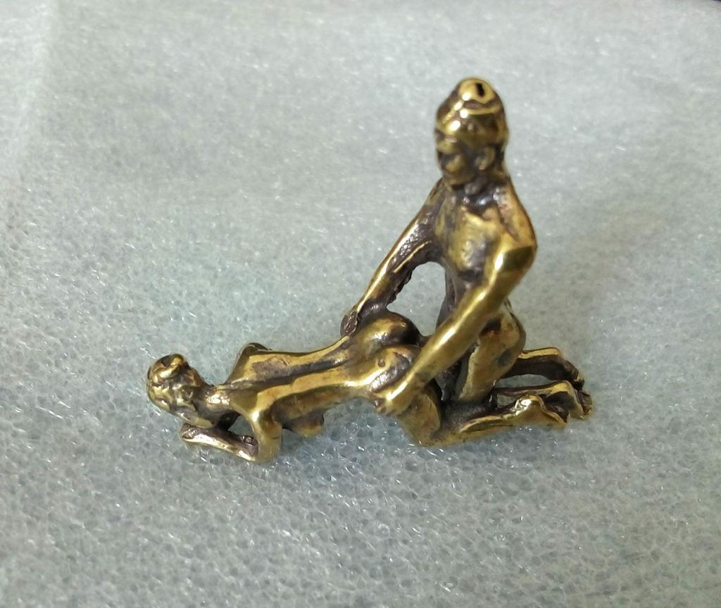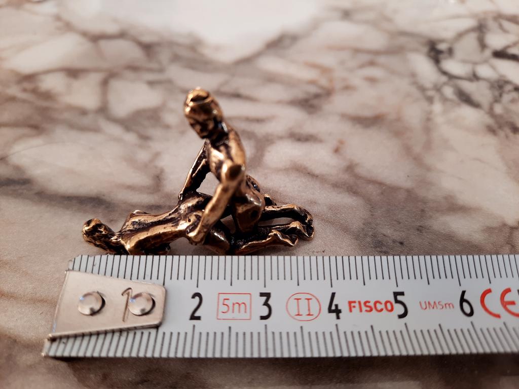 Makro rzeźba wykonana z mosiądzu. Myślałam, że będzie większy, przynajmniej wielkości paczki papierosów. Jest jeszcze mniejsza od standardowej zapalniczki gazowej. Biorąc pod uwagę rozmiar, należało dodać oczko, aby można było go używać jako amulet lub jako brelok do kluczy. Niestety liczba ta nie ma większego sensu