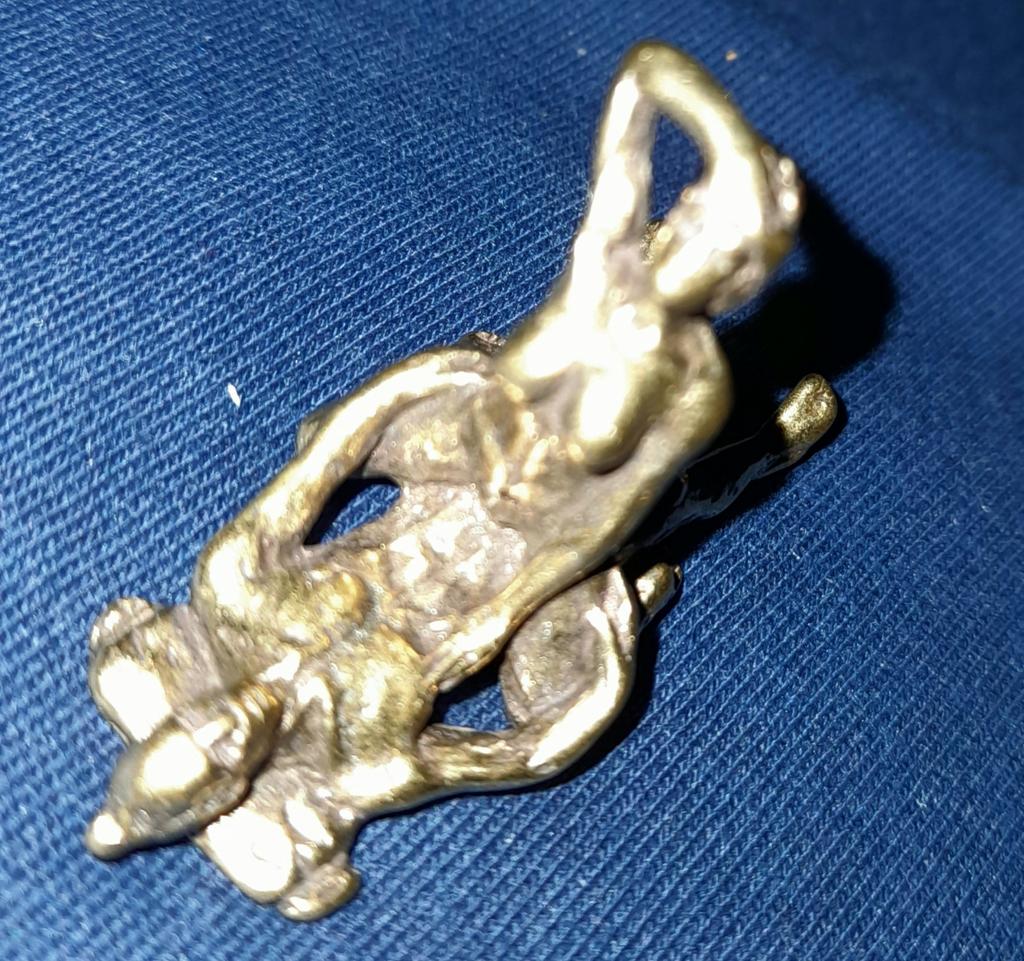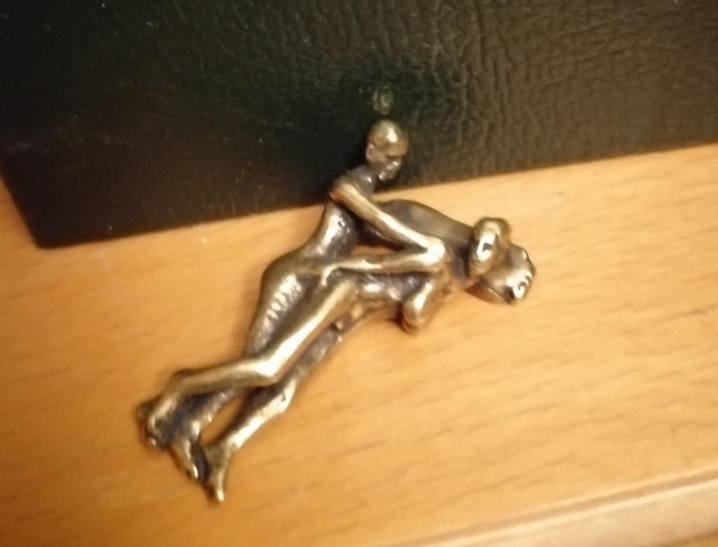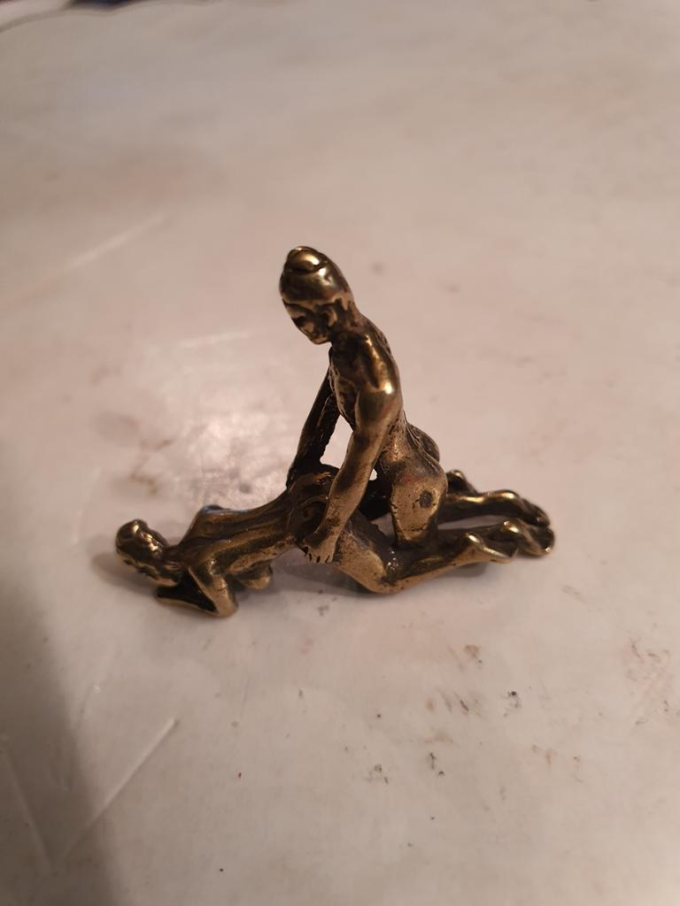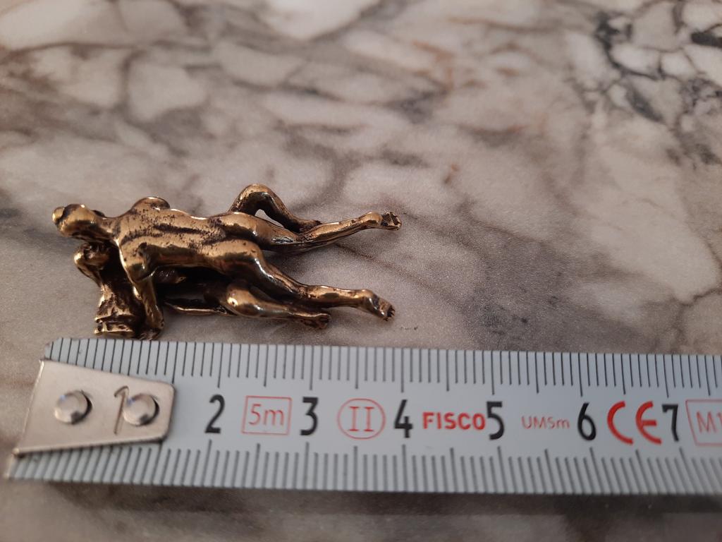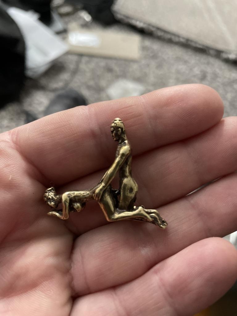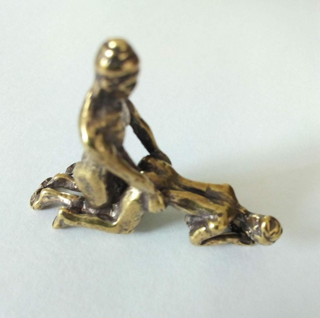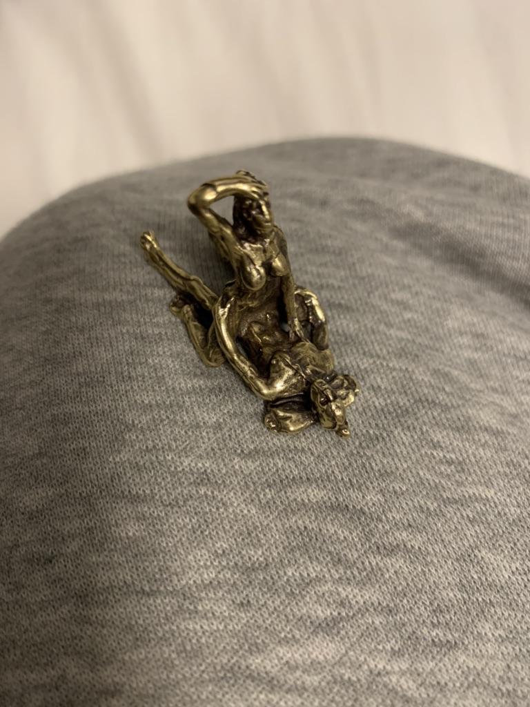 Makro rzeźba wykonana z mosiądzu. Myślałam, że będzie większy, przynajmniej wielkości paczki papierosów. Jest jeszcze mniejsza od standardowej zapalniczki gazowej. Biorąc pod uwagę rozmiar, należało dodać oczko, aby można było go używać jako amulet lub jako brelok do kluczy. Niestety liczba ta nie ma większego sensu
