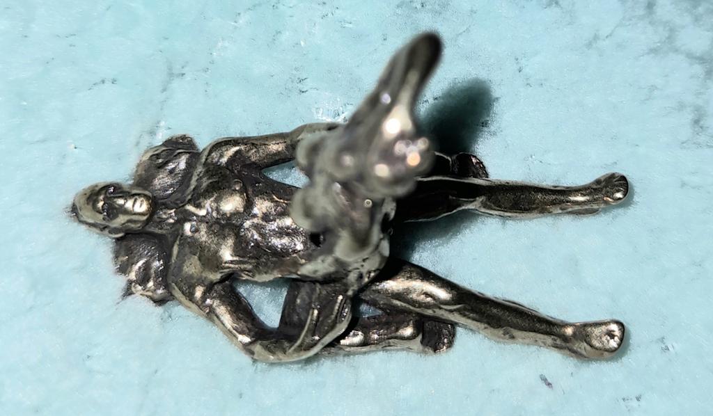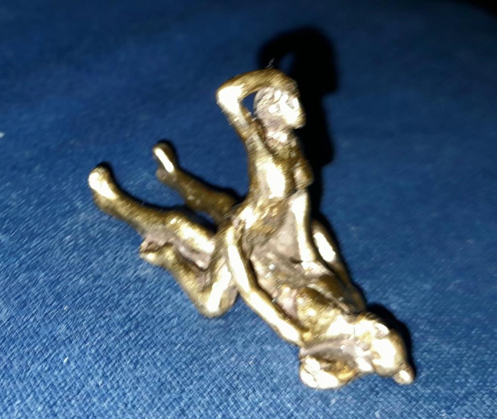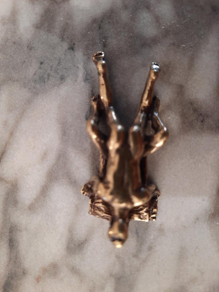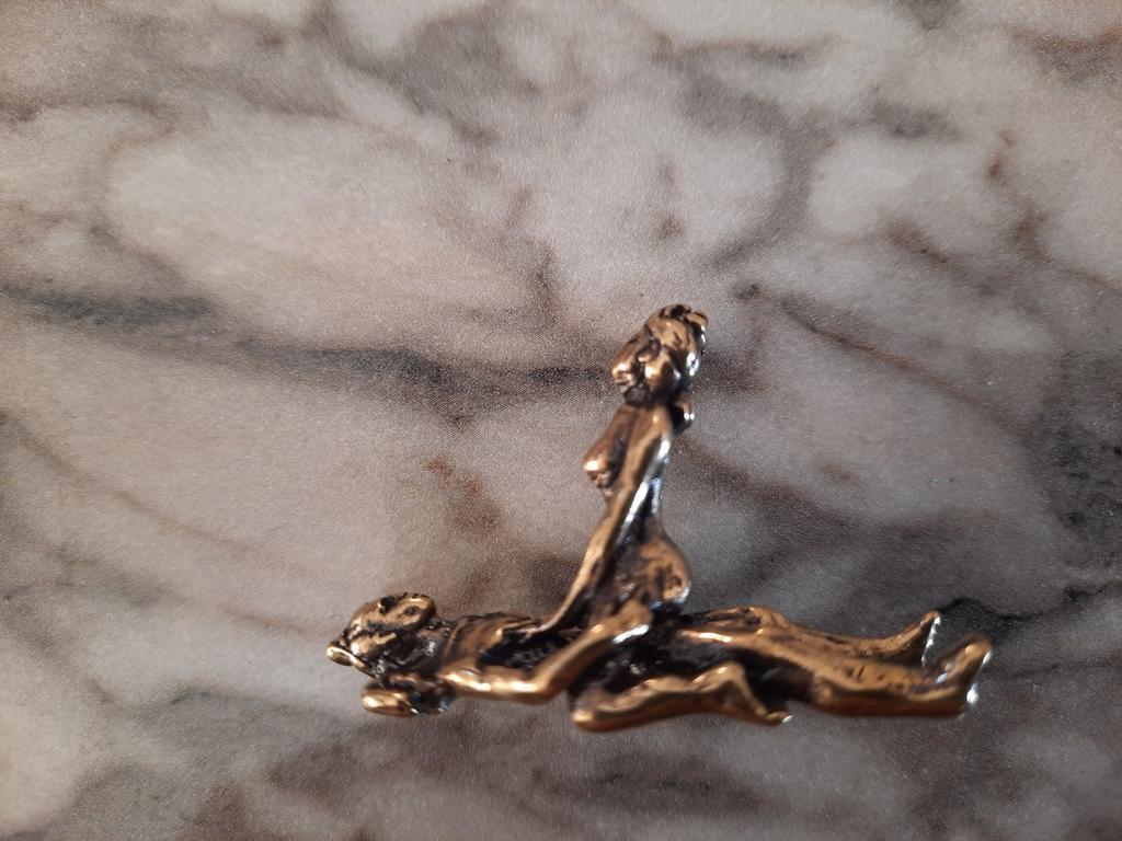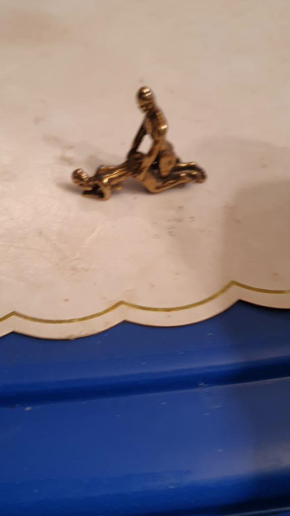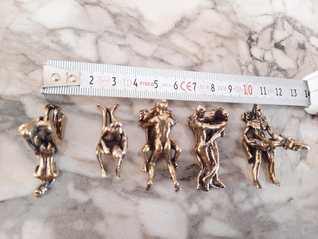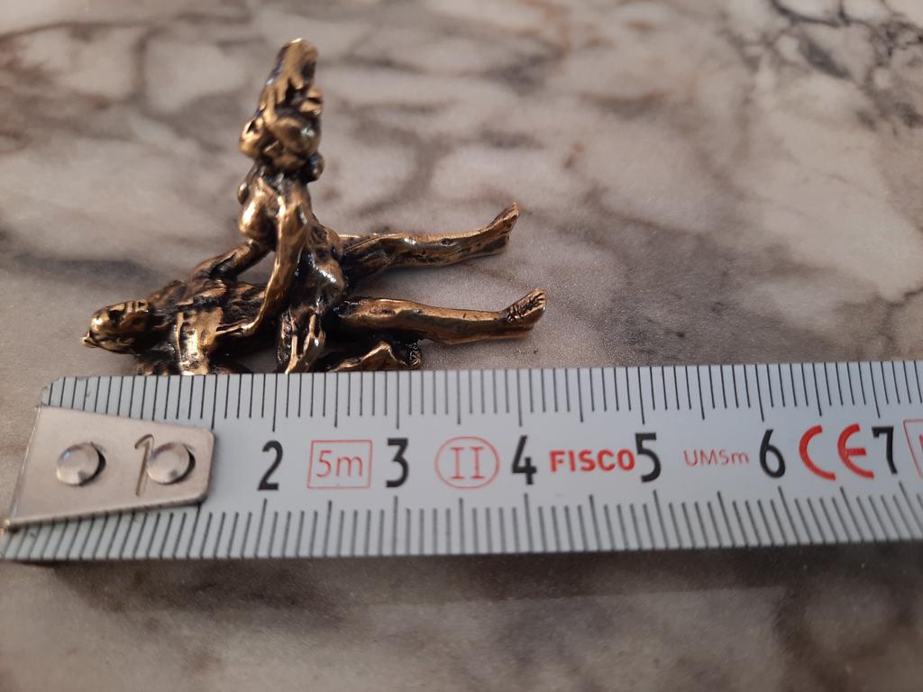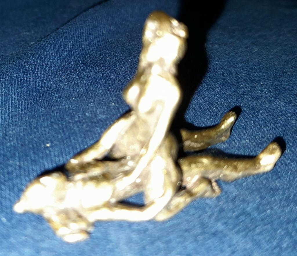 Makro rzeźba wykonana z mosiądzu. Myślałam, że będzie większy, przynajmniej wielkości paczki papierosów. Jest jeszcze mniejsza od standardowej zapalniczki gazowej. Biorąc pod uwagę rozmiar, należało dodać oczko, aby można było go używać jako amulet lub jako brelok do kluczy. Niestety liczba ta nie ma większego sensu