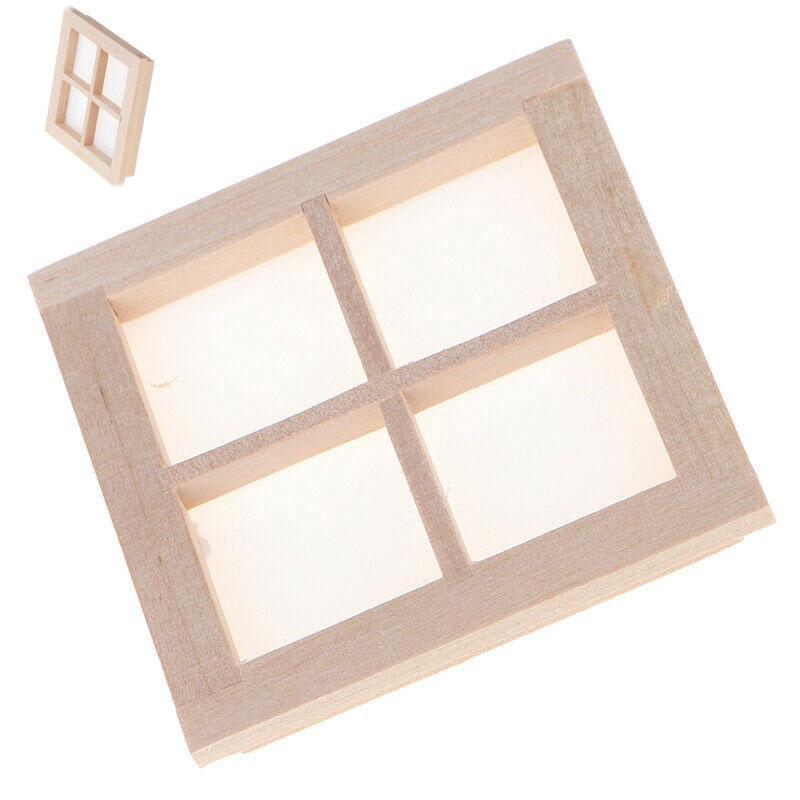 Diy Drewniane Okno Biały Billet Kwadratowe Czteropolowe Okno Akcesoria DIY Mini Okna Dekoracja Kreskówkowa