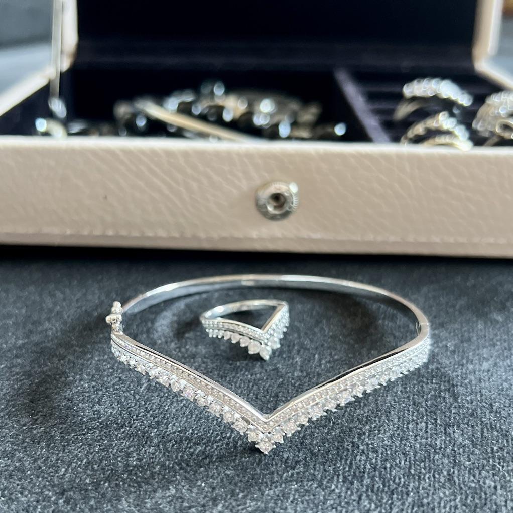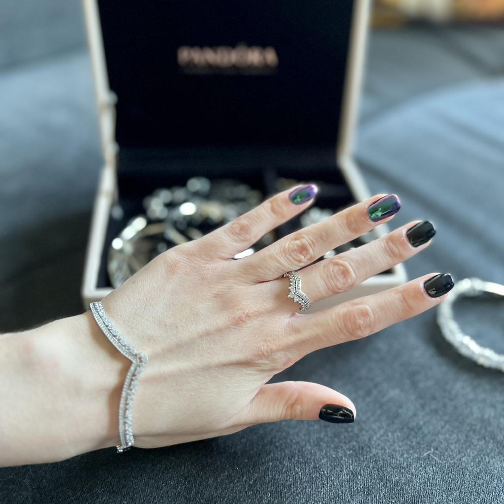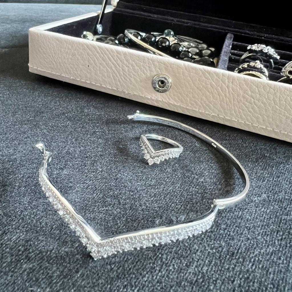 Piękna bransoletka o ciekawym kształcie. Cyrkonie elegancko lśnią, posiada próby mówiące o tym, że wykonano ją ze srebra. Była ładnie zapakowana w pudełeczko wraz ze ściereczką do czyszczenia. Jedyny minus - na mnie jest nieco za duża, a lubię luźne bransoletki. Mam 14cm obwodu w nadgarstku.