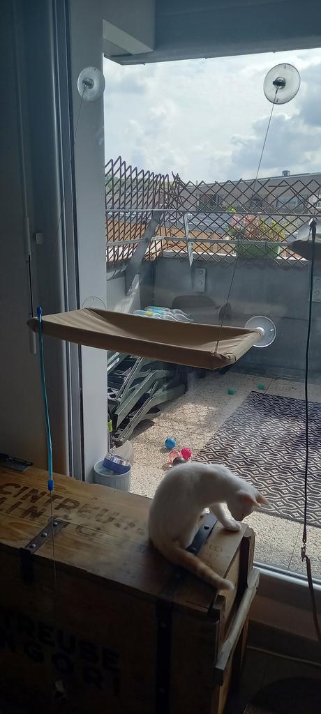 łatwy montaż... mój kot bardzo to lubi... spędza tam całe poranki. ale dołożyłem miękką poduszkę i jej poszewkę...