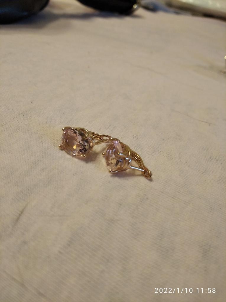 Są również bardzo małe. Na zdjęciu widać duże kolczyki. Ale kamienie pięknie błyszczały i były pokryte różowym złotem. Po prostu nie mogę tak nosić moich dzieci