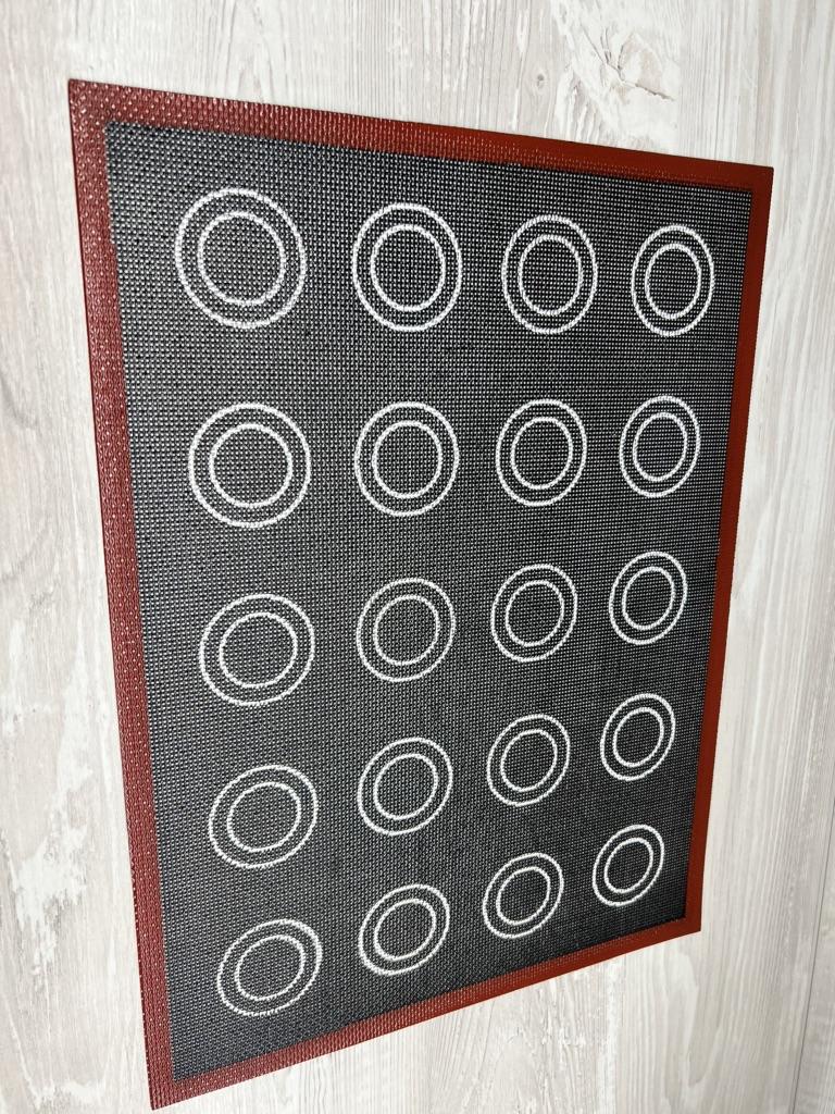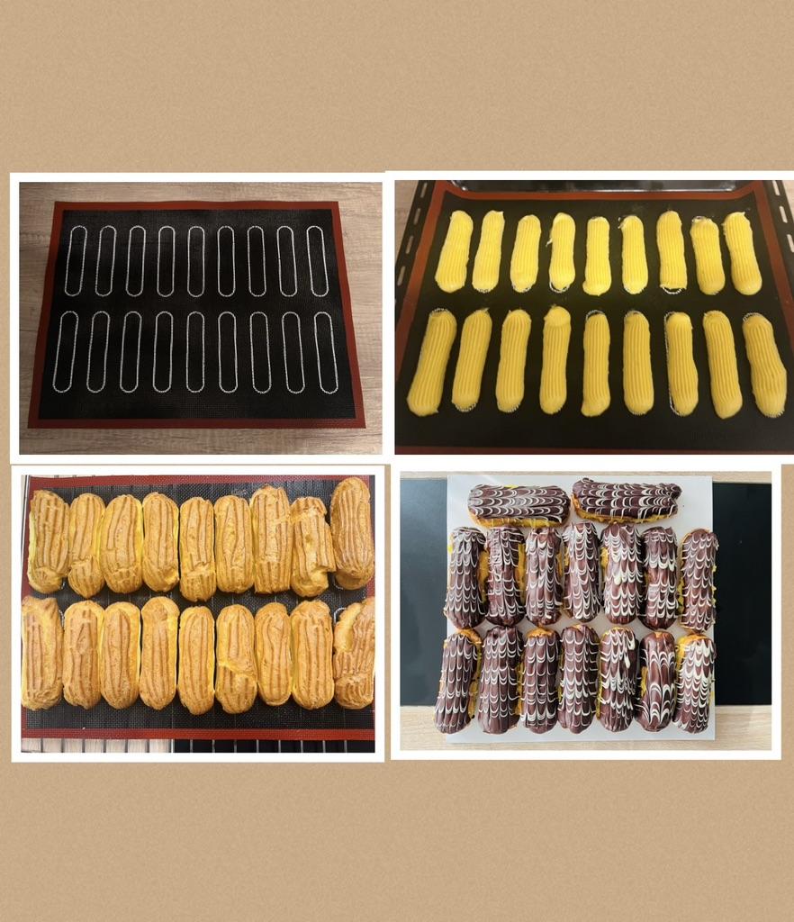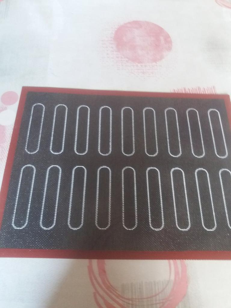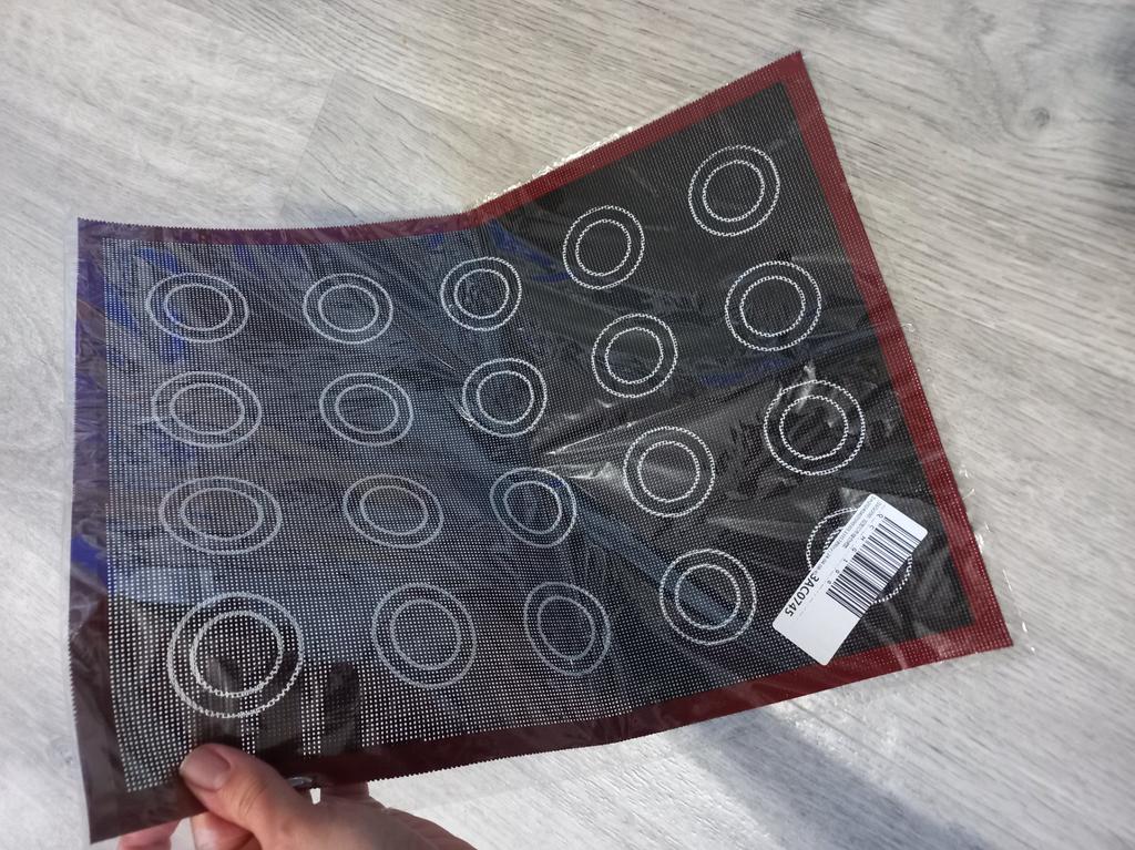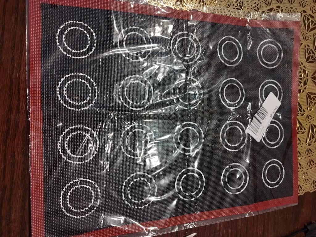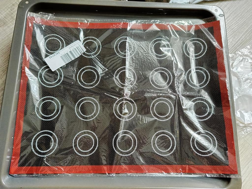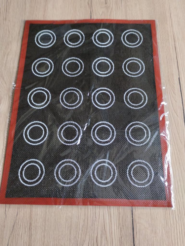 Mata przyszła dość szybko w MD (25 dni) Jest w idealnym stanie. Dla tych, którzy nie wiedzą, ta mata nie nadaje się do makaroników, ponieważ ma dziurki, ale jest idealna do eklerów i ptysiów.