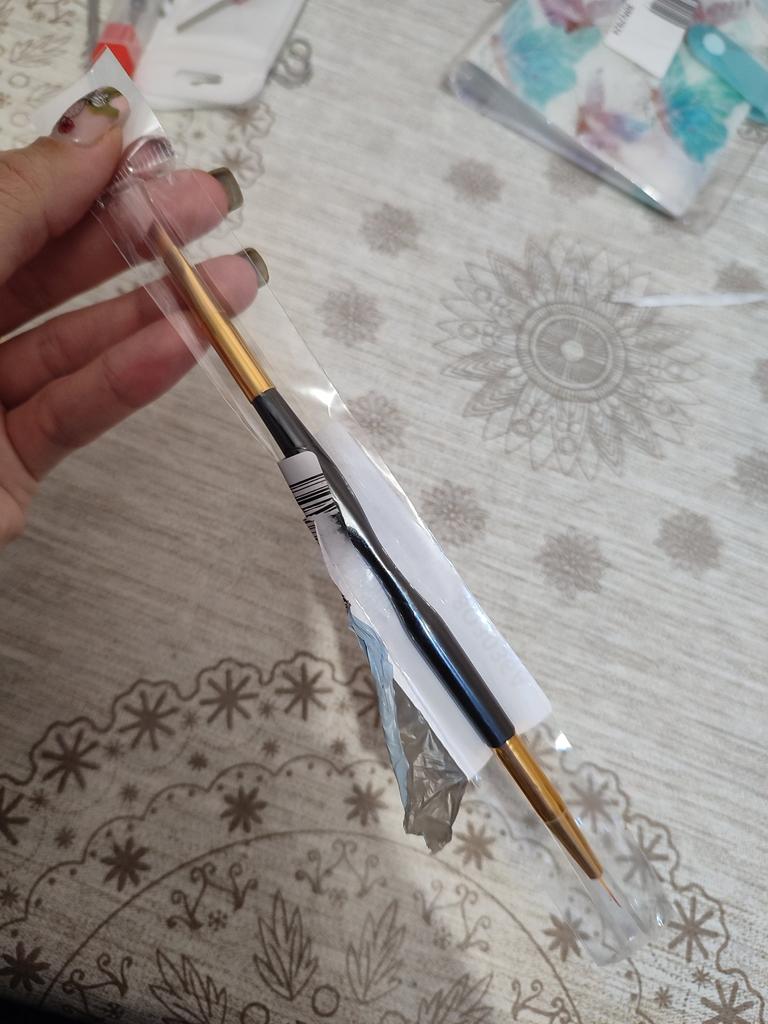 Pędzelki doszły w ok trzy tygodnie. W zestaw wchodzą 3 dwustronne pędzle. Z jednej strony znajdziemy super cienkie i precyzyjne pędzelki, różnej długości do zdobień lub malowania pod skórki, z drugiej zaś pędzelki idealnie nadające się do żelu/akrylu/alrylożelu. Dzięki profilowaniu, wygodnie trzyma się je w ręce.