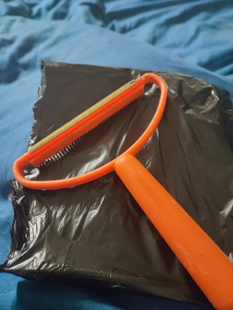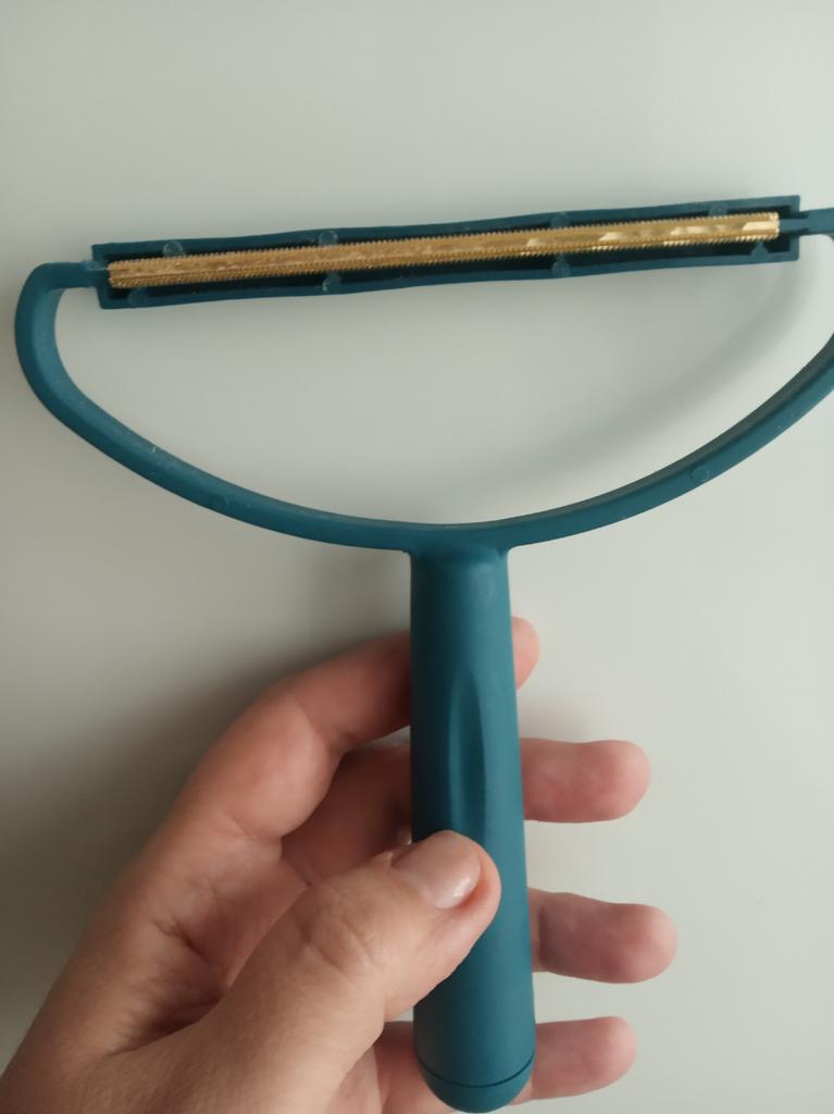 Wałek do czyszczenia dywanów i mebli. Dobrze leży w dłoni i nie wyślizguje się. Sprawia wrażenie ciężaru, a nie lekkości. Posiada dwie strony - metalowy grzebień i gumowaną. Wypróbowałem to na sofie, bo... W domu nie ma dywanów, na poduszce znajduje się niewielka ilość puchu. Nie nadaje się do delikatnych tkanin - rysuje zbyt szorstko. Zasadniczo, jeśli masz liniejące zwierzęta lub domowników z wypadającymi włosami🤪, to ci się spodoba. Nie moja opcja - nie wypadają mi włosy i kot Sfinks 😊, więc przekazuję to mojej przyjaciółce. Ma UAH do złożenia wniosku.