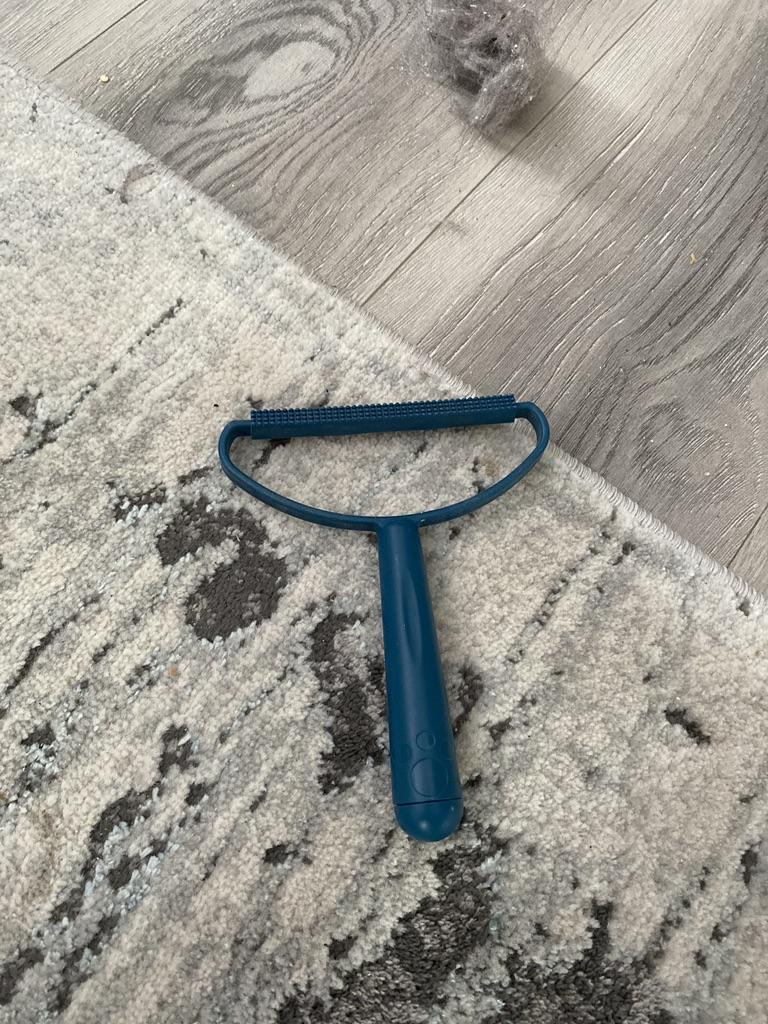 Dobry pomocnik w czyszczeniu puchu! Najpierw usunąłem puch z dywanika, na którym spoczywa mój kotek, a następnie z dywanu. Pędzel świetnie poradził sobie z zadaniami.
