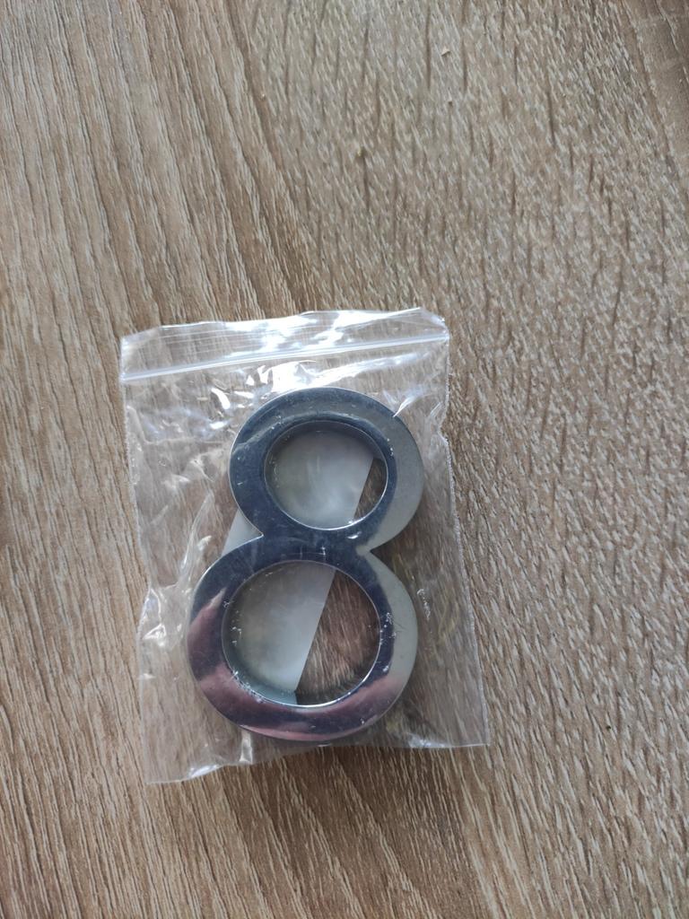 Wysokiej jakości chrom, plastikowy numer, mam nadzieję, że będzie się dobrze trzymał... jest rzep do przyklejenia