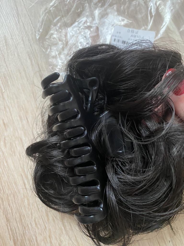 Treski na klipsie. Nadaje fryzurze objętość. Włosy Syntetyczne. Trochę to widać. Ale jak na razie przynosi to skutek.