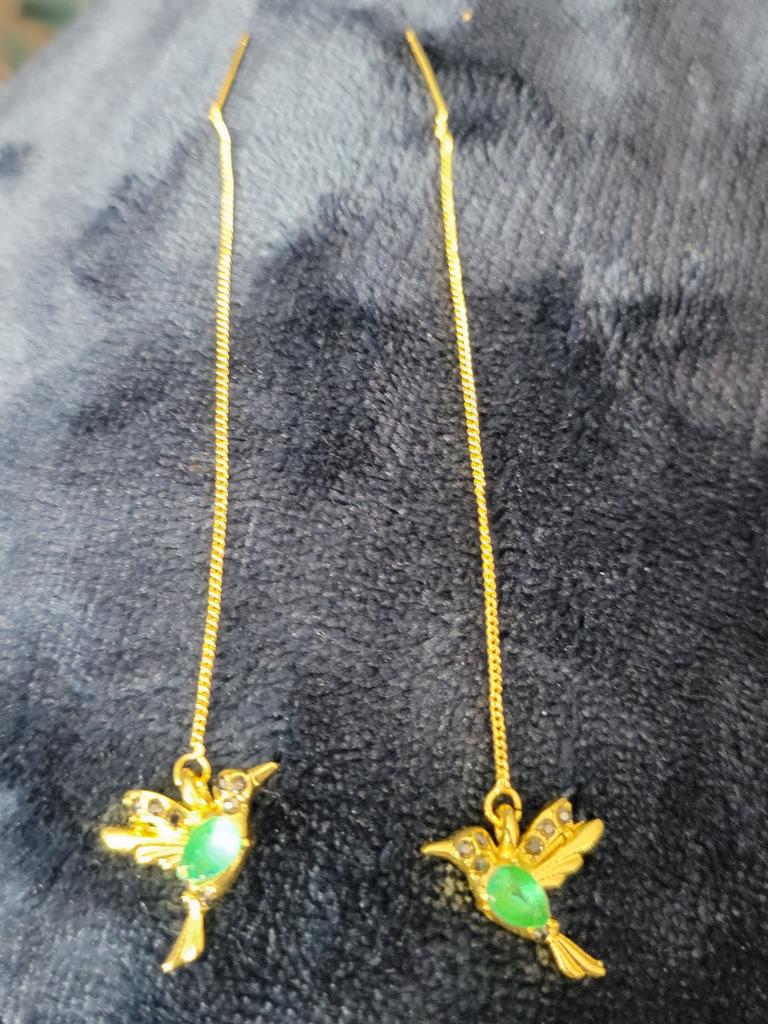 Niestety zły kolor, zamówiłam ładne kolczyki w pokazanym kolorze, bo idealnie pasowałyby do mojej sukni, dostarczono mi jasnożółte złoto, które w ogóle nie pasuje, a ptaszki są zielone. Chętnie zamówiłabym kolczyki ponownie, jeśli miałabym pewność, że metal jest srebrny