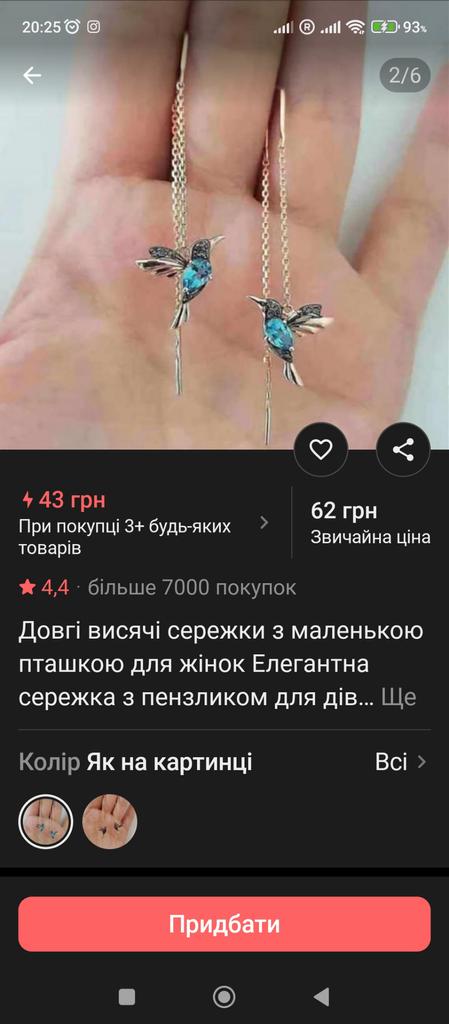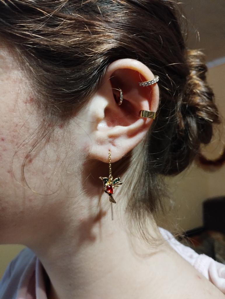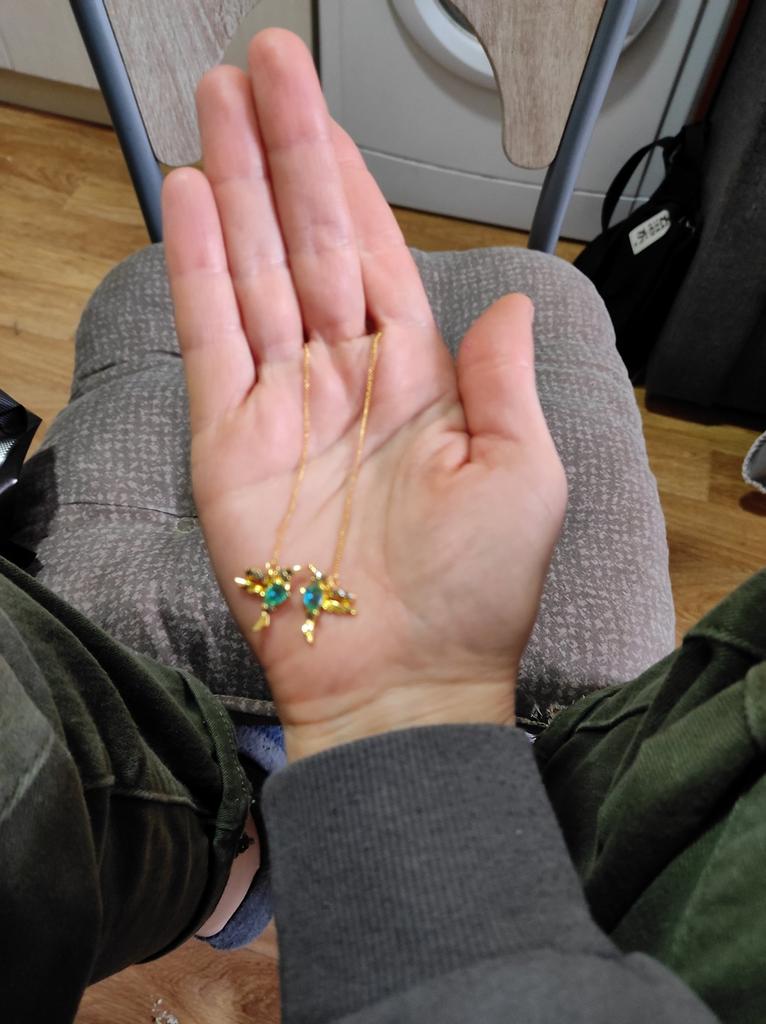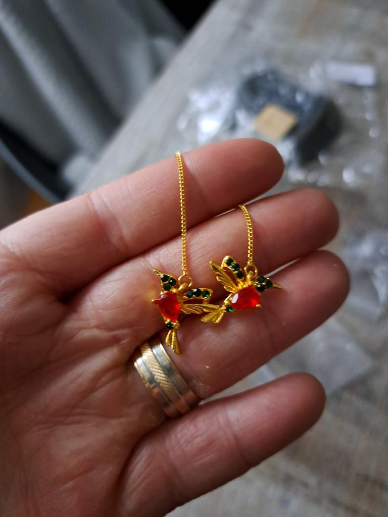 Bardzo urocze i delikatne kolczyki. Dobrze wyglądają na uszach. Opakowanie nie jest uszkodzone. Wszystko wydarzyło się na czas. Dzięki Joom i sprzedawcy za szybkość.