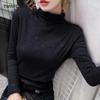 Zimowy damski modny top brokatowy damski nowy gruby pół zabudowany dekolt najniższy T-shirt z długim rękawem Basic All Match Tees