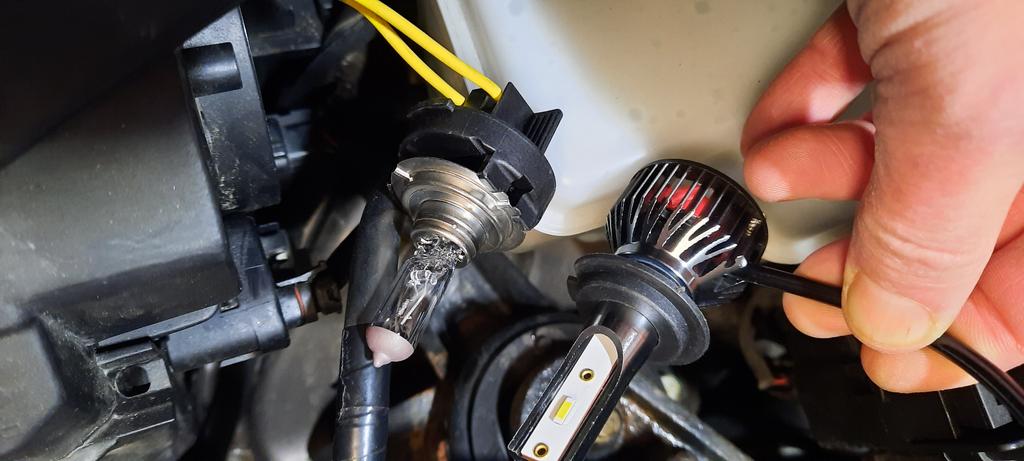 Świeci dobrze, zobaczymy jak długo będzie, po lewej fabryczny halogen, po prawej ta żarówka, ale przy pochmurnej pogodzie, na mokrym asfalcie nic nie widać. Działał 2 tygodnie, najbliższy zniknął