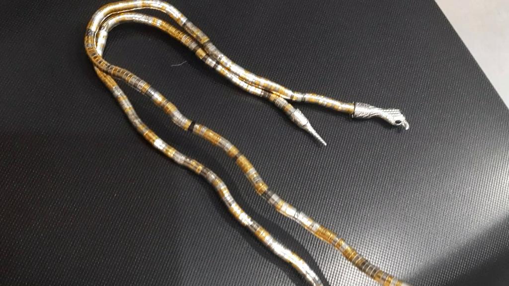 Super mega fajny wąż)) chcesz go nosić jako bransoletkę, albo chcesz jako naszyjnik lub pasek, jeśli talia na to pozwala 🤭 paczka dotarła szybko. Polecam dziewczynom 👍