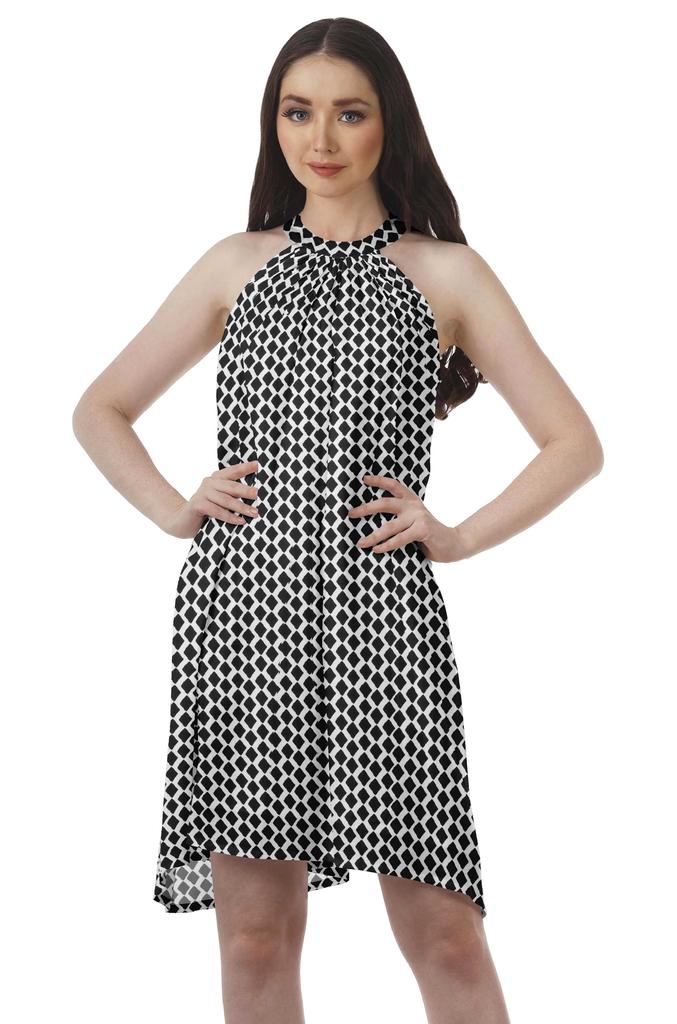 * Funkcje: Nadruki na całej powierzchni, krótka długość, bez rękawów, halter, dół w kształcie litery A z guzikiem z tyłu.