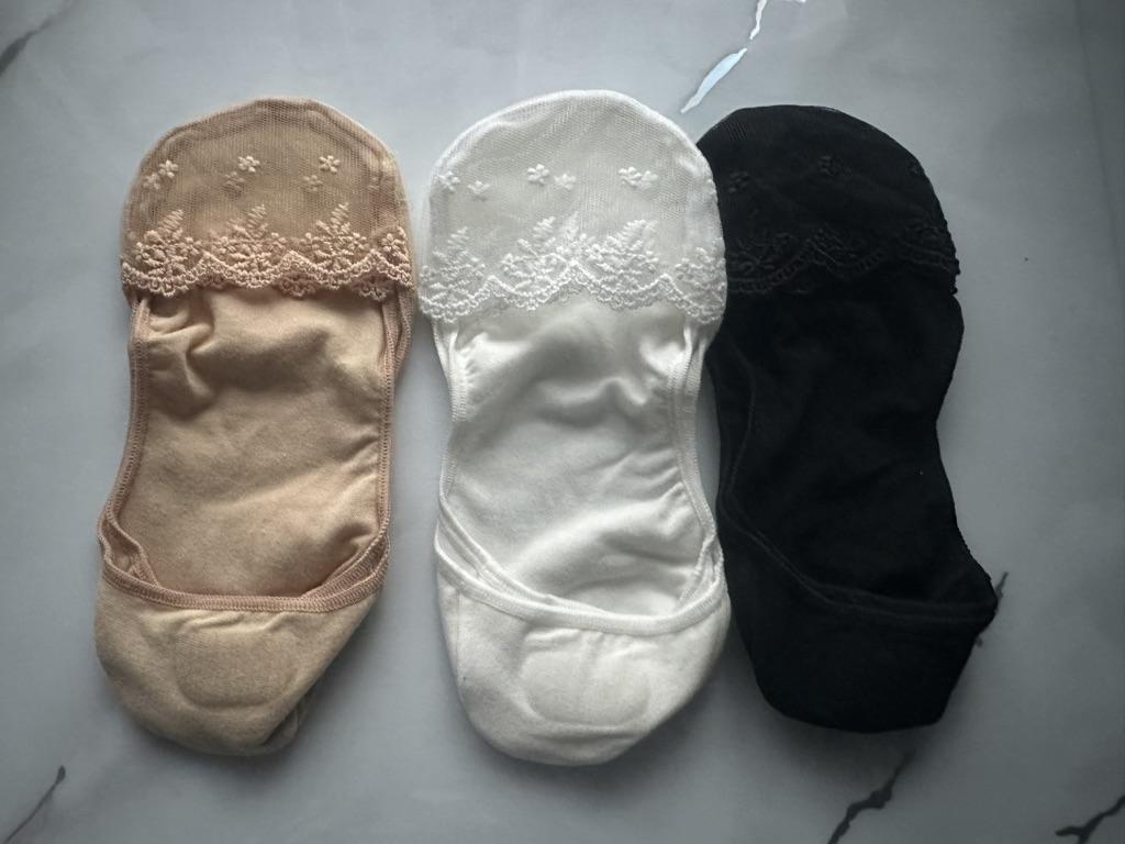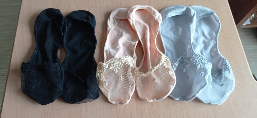 Trzy pary w różnych kolorach, wszystkie w różnych rozmiarach. Czarny jest za mały, beżowy za duży, pasuje tylko szary. Jakość jest dobra)
