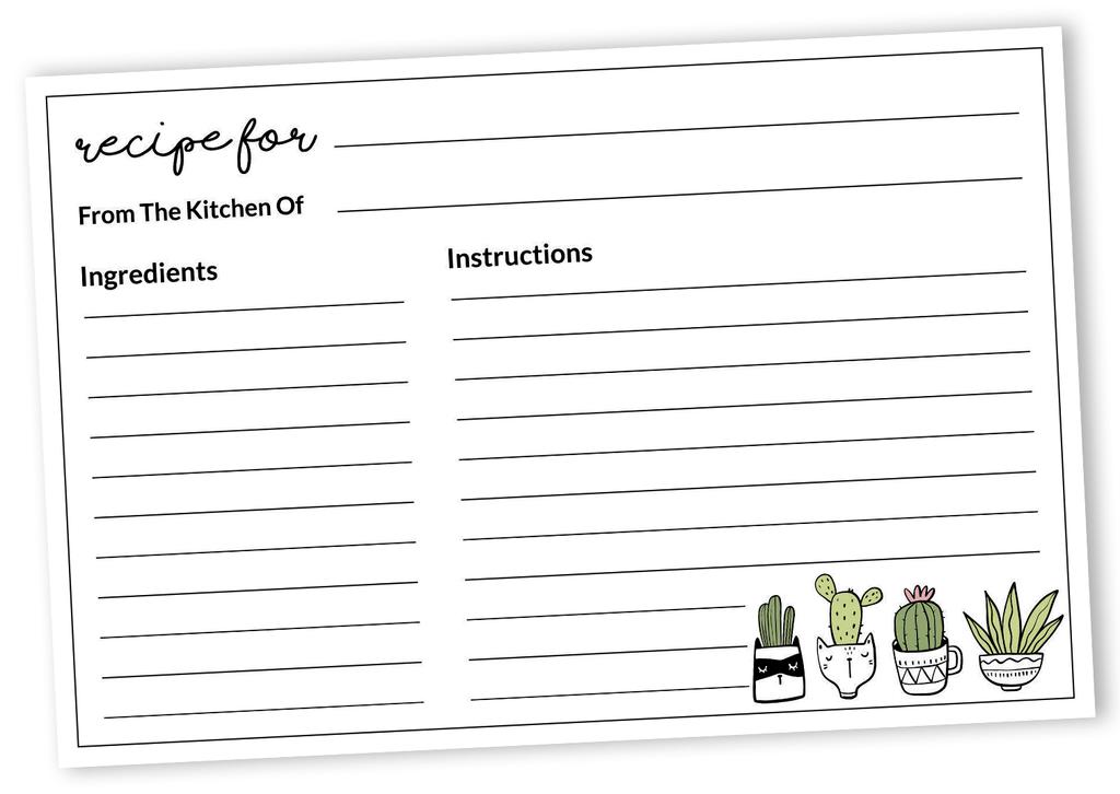 Inkdotpot Karta Przepisu 6x4 cala Jednostronne Karty z Projektami Przepisów Biały Kaktus Karty Przepisów Ślub-Wieczór Panieński-Baby Shower- Opakowanie