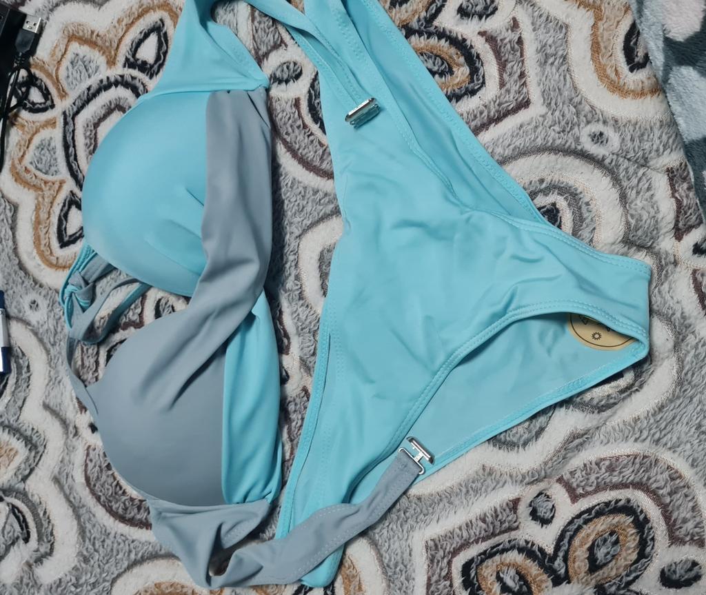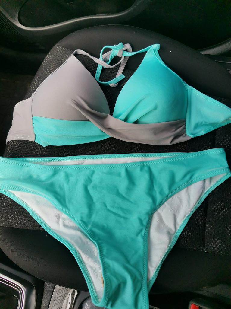 Zamówiłam niebieskie bikini. Jednakże dostarczony towar jest w kolorze turkusowym/jasnozielonym. Daleko to do tego pięknego błękitu nieba na zdjęciu. Taka frustracja