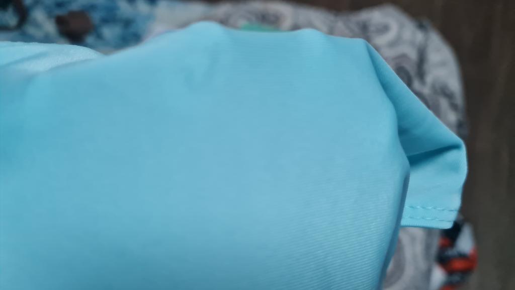 Jakość jest doskonała, wszystkie szwy są równe i schludne. Rozmiar jest dokładnie zgodny z tabelą rozmiarów. Jedynie rzeczywisty kolor różni się od zdjęcia. Nie turkusowy, ale metaliczny, ale w połączeniu z szarością też wygląda bardzo ładnie.