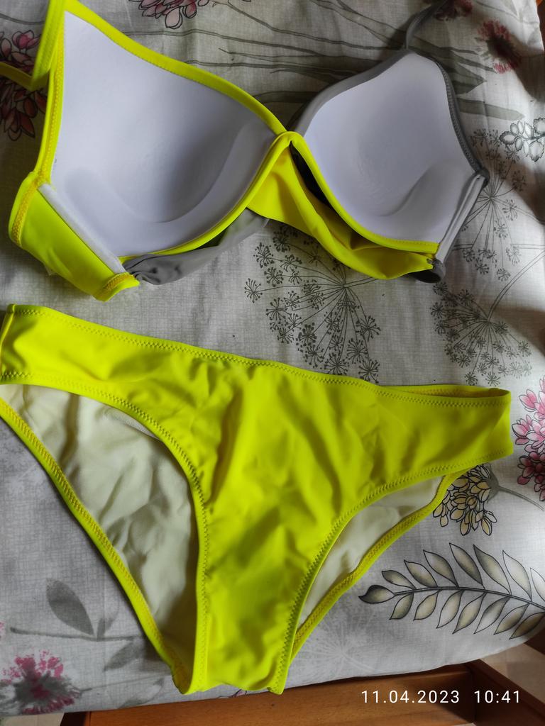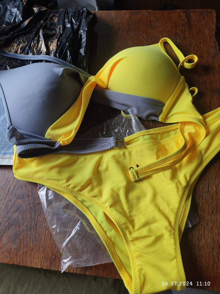 Zamówiłam dwa kostiumy kąpielowe w tym samym kolorze, tylko w różnych rozmiarach, gdyż dolna część była w rozmiarze L, a górna w rozmiarze XXL, aby stworzyć jeden komplet. Niestety, mimo że zamówiłam je w tym samym czasie, odcień żółtego jest zupełnie inny. Szkoda, bo poza tym byli bardzo mili
