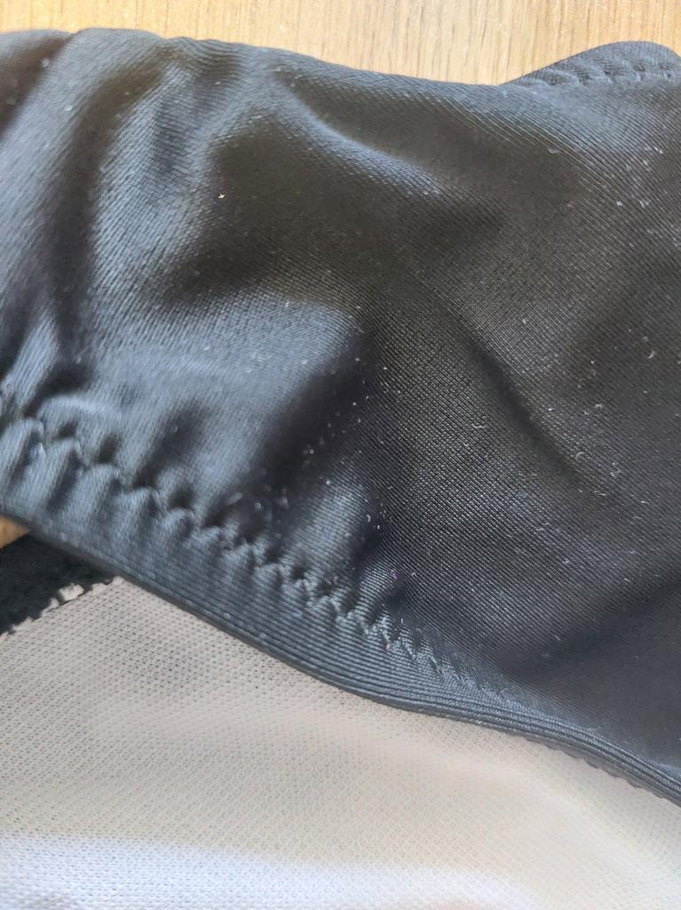 Dół jest mały, szeroki, sporo materiału gromadzi się pomiędzy nogawkami, natomiast góra jest za duża na mój pierwszy rozmiar. dół kostiumu zniekształca sylwetkę, ponieważ wszystko uciska zarówno nogi, jak i pośladki, trzeba będzie to zmienić