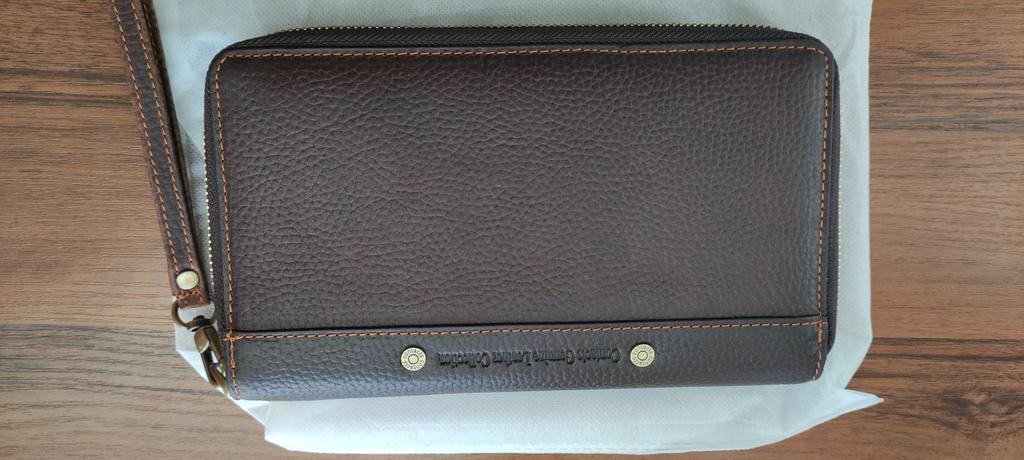 Portfel męski ze skóry naturalnej Clutch Zipper Card Holder Portmonetki męskie Vintage Długie portfele z paskiem na rękę