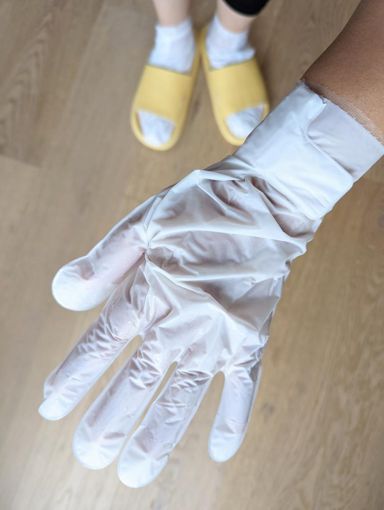 ✋Nawilżająca maska peelingująca do rąk z niacynamidem Marka: HYQING 🌟🌟🌟🌟🌟 Świetnie nawilżył moje dłonie. Sprawił, że moje dłonie były jak skóra dziecka, takie miękkie. Nadaje się również do peelingu. Aby zobaczyć efekt, musisz poczekać kilka dni. Ale nie zobaczysz peelingu tak, jakbyś to widział na piechotę. Dzieje się tak dlatego, że w ciągu dnia często myjemy ręce, złuszczony martwy naskórek wypada bardzo szybko, zanim zdążymy go zobaczyć. Ma niesamowity różany zapach. Ciekawą cechą tego zadania jest to, że ma wycięte linie na czubkach palców. Jeśli więc do sterowania telefonem komórkowym potrzebujesz używać opuszków palców, możesz wyrwać te części i gotowe. Jak używać: * Umyj ręce i osusz *Wytnij maseczkę tak, aby móc ją założyć i założyć rękawiczki. * Poczekaj około 15-20 minut. Czekając, możesz robić różne rzeczy. Możesz sterować smartfonami, gdy masz założone rękawiczki. Na moim pierwszym zdjęciu chciałem pokazać, że można robić różne rzeczy, mając rękawiczki. * Gdy nadejdzie czas, spłucz ręce ciepłą wodą. Jest to maska jednorazowego użytku. Po użyciu rękawice należy wyrzucić. Nie należy go stosować na popękaną skórę. Jest odpowiedni dla każdego rodzaju skóry.